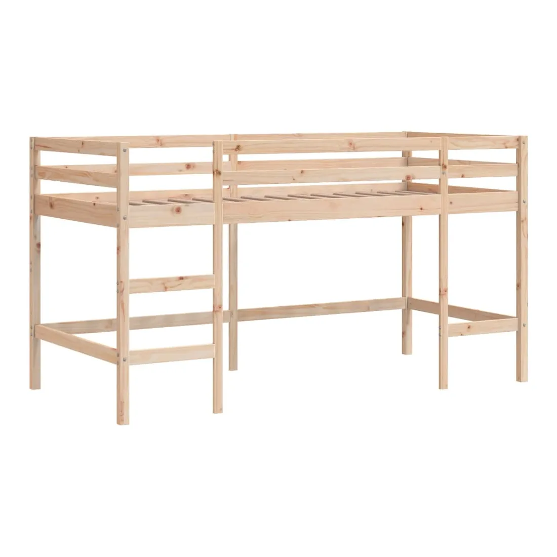 Ce lit mezzanine pour enfants est fabriqué en pin massif et est conçu pour recevoir et optimiser l'espace. Construction en bois stable : ce lit intermédiaire est fabriqué en bois de pin massif pour plus de stabilité et de durabilité. Le bois de pin a un grain droit et les nœuds donnent au matériau son aspect rustique caractéristique. Utilisation optimale de l'espace : ce lit mezzanine simple est surélevé de 78,5 cm par rapport au sol, ce qui laisse beaucoup d'espace en dessous pour le rangement ou d'autres activités. Cet espace peut être utilisé pour empiler des boîtes de rangement, ranger de gros jouets ou même placer un canapé pour enfants pour la lecture. Très amusant : vous pouvez combiner les rideaux avec le cadre de lit pour créer la base secrète de votre enfant, ce qui permet de s'amuser à l'heure du coucher et d'ajouter un point d'intérêt à la chambre ! Barrières de sécurité : le lit mezzanine pour enfants est équipé de garde-corps de sécurité sur les 4 côtés, afin que votre enfant puisse dormir sans craindre de tomber. Échelle pratique : ce lit mezzanine pour enfants est doté d'une échelle qui permet de monter et de descendre dans et du lit en toute simplicité. Elle apporte également de la joie et transforme leur chambre en terrain de jeu intérieur. Bon à savoir :Un matelas n'est pas inclus avec ce lit. Nous offrons une sélection variée de matelas. Vous pouvez consulter notre boutique pour trouver un matelas assorti. Attention :Pour éviter qu'il ne soit renversé, ce produit doit être utilisé avec le dispositif de fixation au mur fourni.