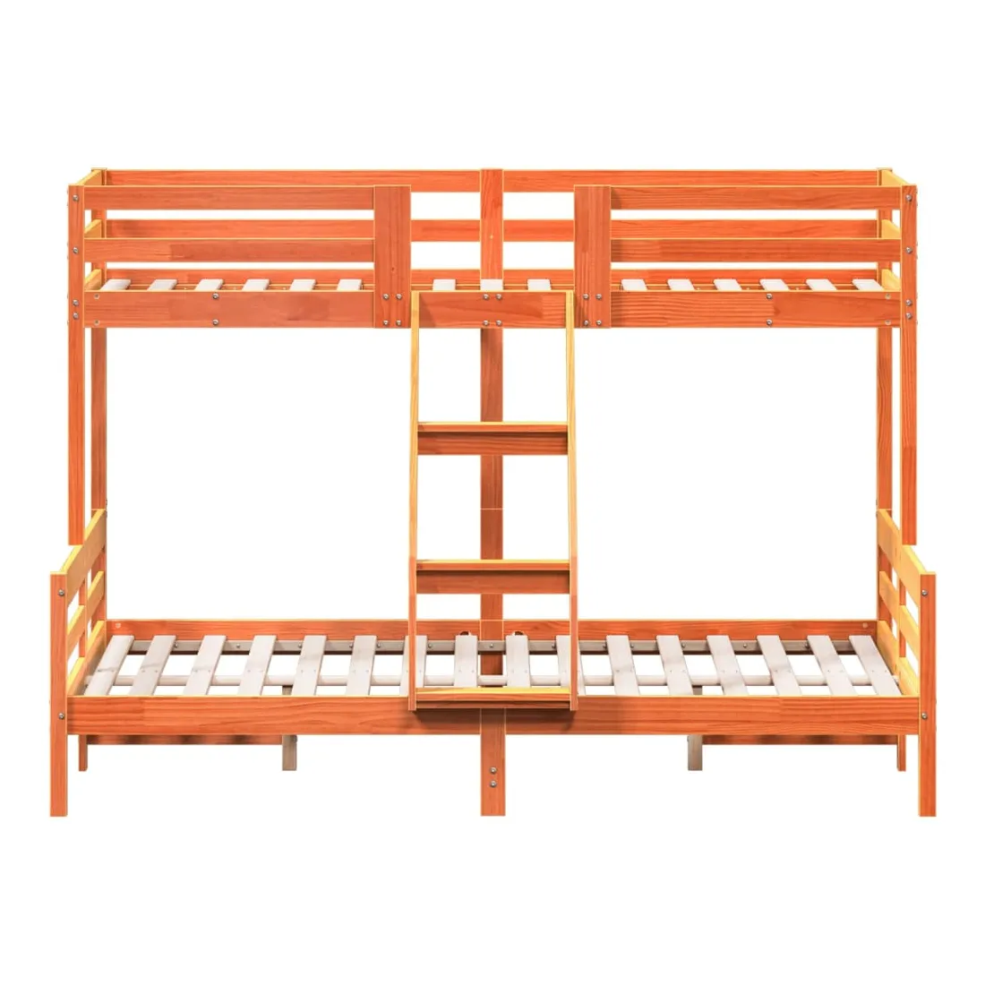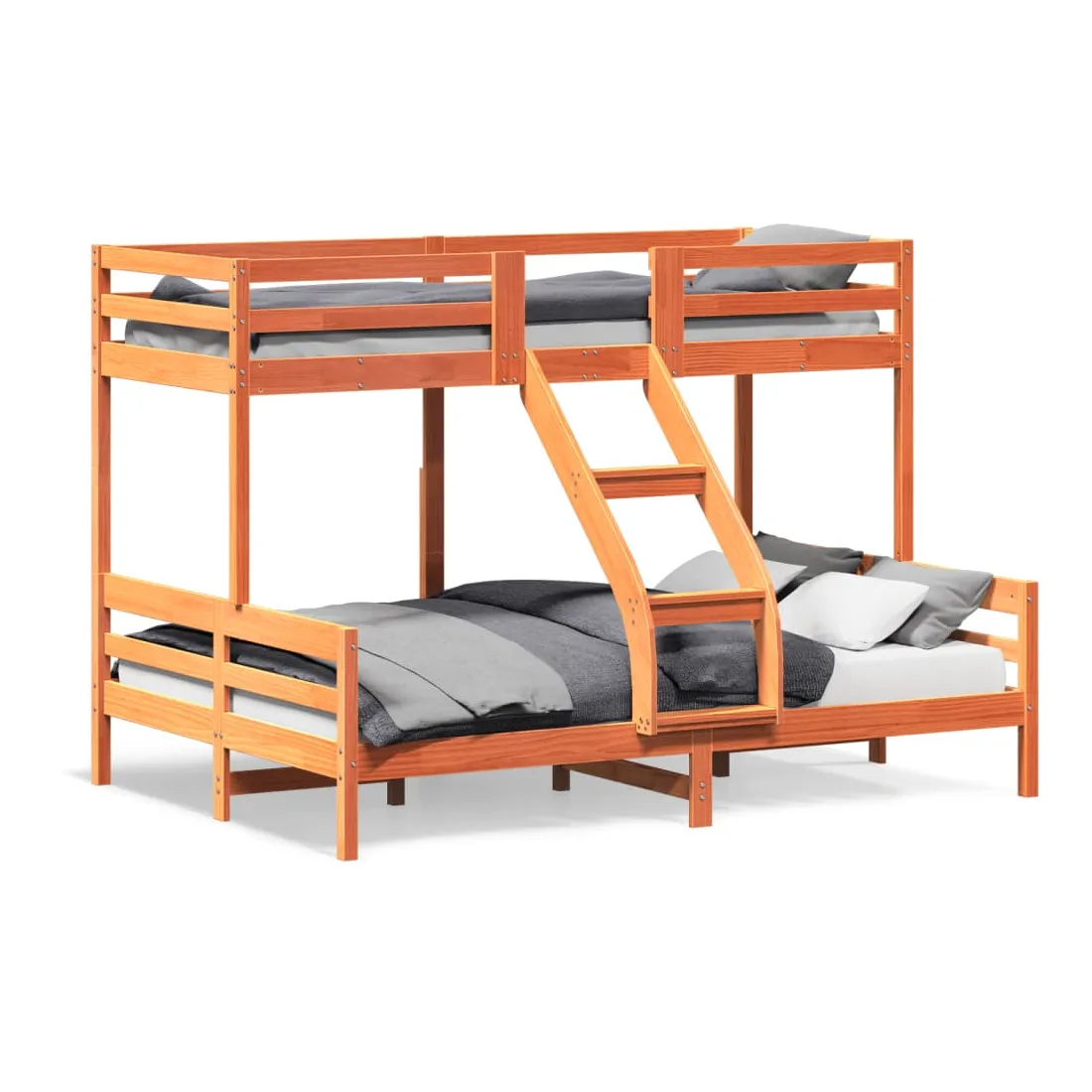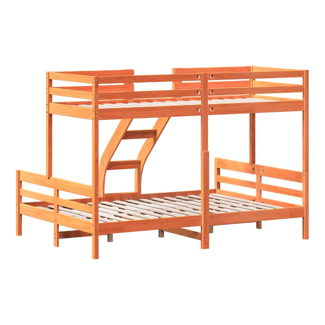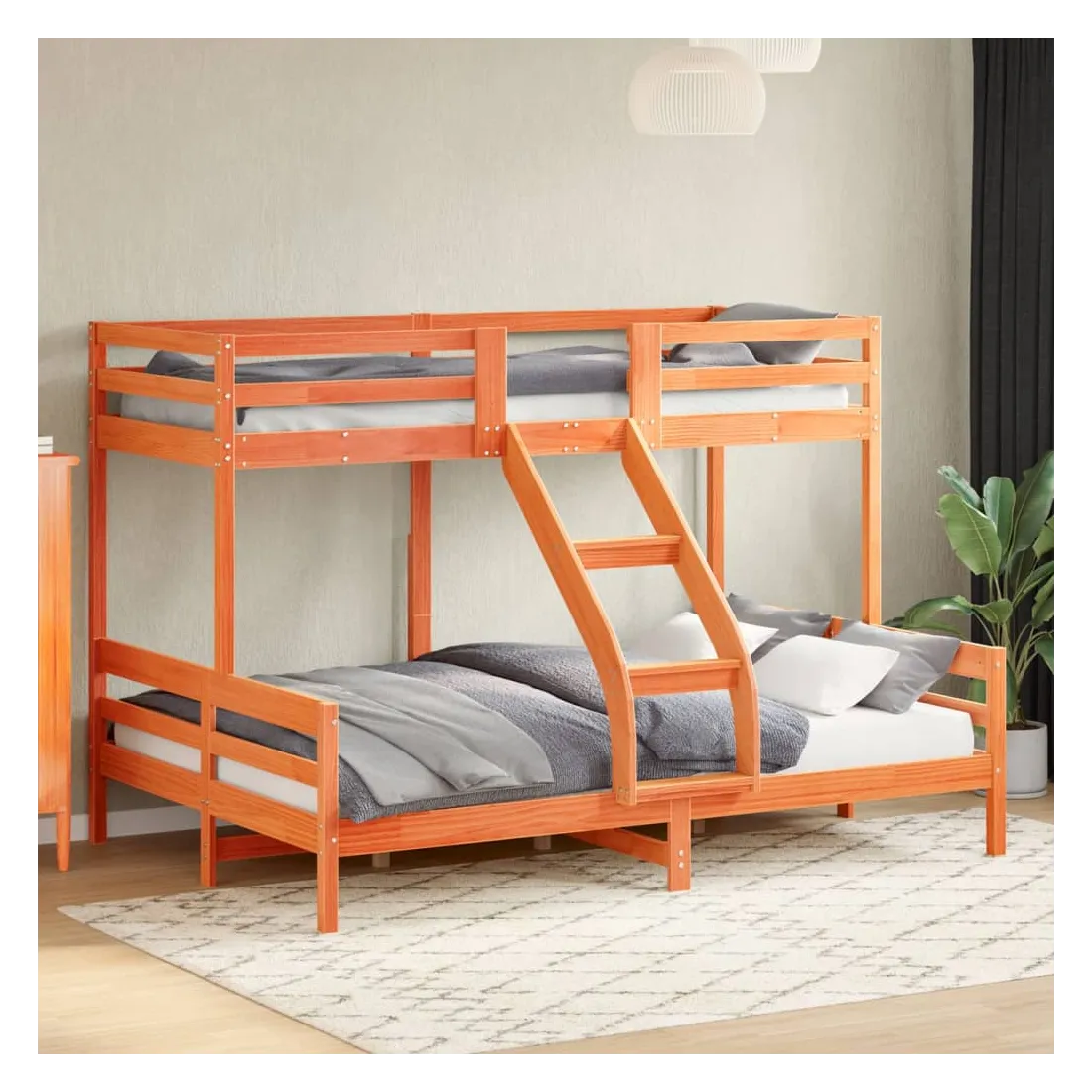 Ce lit superposé en bois est élégant et fonctionnel, ce qui en fait un supplément parfait à toute pièce dont l'espace est limité. Bois de pin massif : le bois de pin massif est un matériau naturel magnifique. Le bois de pin a un grain droit et les nœuds donnent au matériau son aspect caractéristique et rustique.Design sûr : le lit surélevé est conçu dans un souci de sécurité. Il comprend des garde-corps qui empêchent l'utilisateur de rouler pendant son sommeil.Convient aux espaces limités : le cadre de lit est un excellent choix pour toute pièce dont l'espace est limité, il fournit deux lits individuels avec un design compact. Bon à savoir :La livraison comprend uniquement un cadre de lit. Le matelas n'est pas inclus. Vous pouvez consulter notre boutique pour trouver les matelas assortis.