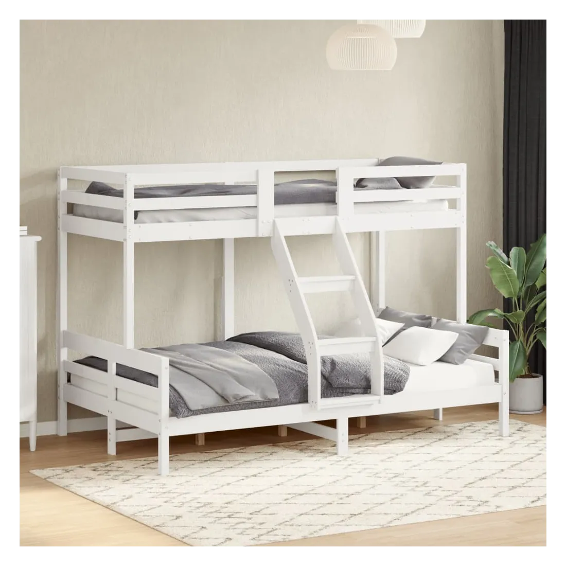 vidaXLCe lit superposé en bois est élégant et fonctionnel, ce qui en fait un supplément parfait à toute pièce dont l'espace est limité. Bois de pin massif : le bois de pin massif est un matériau naturel magnifique. Le bois de pin a un grain droit et les nœuds donnent au matériau son aspect caractéristique et rustique.Design sûr : le lit surélevé est conçu dans un souci de sécurité. Il comprend des garde-corps qui empêchent l'utilisateur de rouler pendant son sommeil.Convient aux espaces limités : le cadre de lit est un excellent choix pour toute pièce dont l'espace est limité, il fournit deux lits individuels avec un design compact. Bon à savoir :La livraison comprend uniquement un cadre de lit. Le matelas n'est pas inclus. Vous pouvez consulter notre boutique pour trouver les matelas assortis.