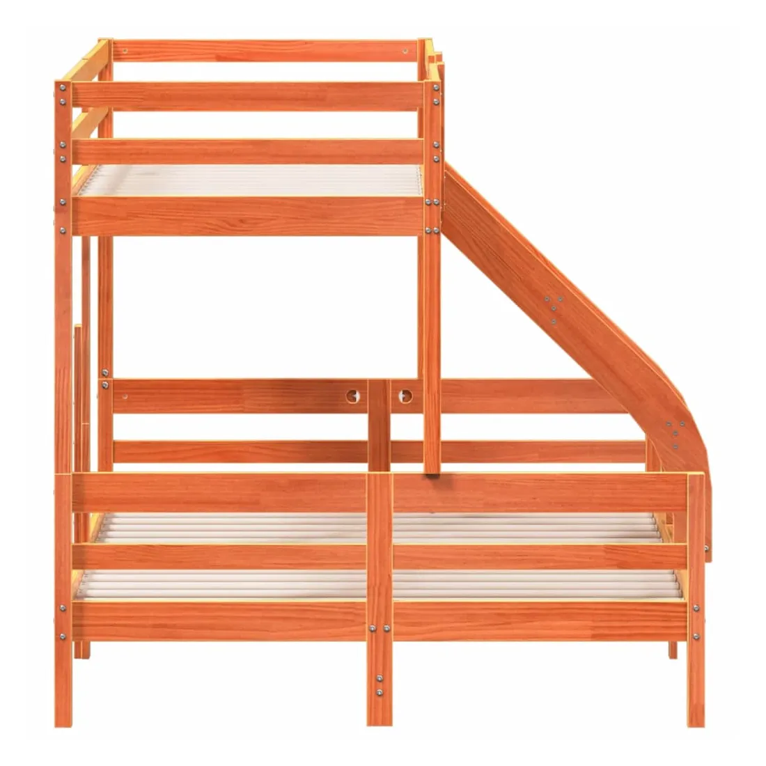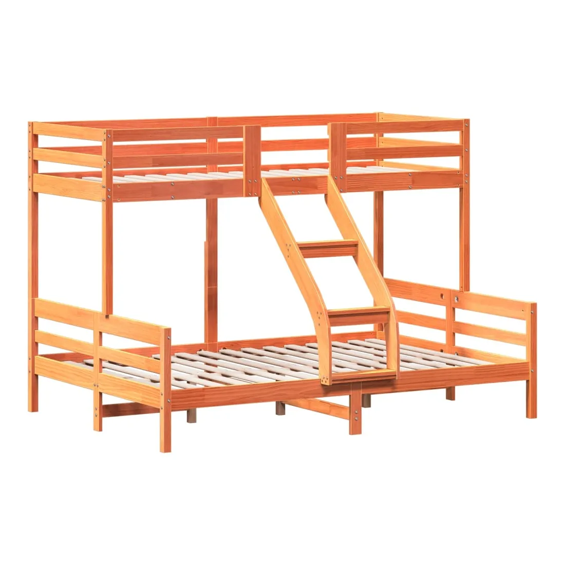 Ce lit superposé en bois est élégant et fonctionnel, ce qui en fait un supplément parfait à toute pièce dont l'espace est limité. Bois de pin massif : le bois de pin massif est un matériau naturel magnifique. Le bois de pin a un grain droit et les nœuds donnent au matériau son aspect caractéristique et rustique.Design sûr : le lit surélevé est conçu dans un souci de sécurité. Il comprend des garde-corps qui empêchent l'utilisateur de rouler pendant son sommeil.Convient aux espaces limités : le cadre de lit est un excellent choix pour toute pièce dont l'espace est limité, il fournit deux lits individuels avec un design compact. Bon à savoir :La livraison comprend uniquement un cadre de lit. Le matelas n'est pas inclus. Vous pouvez consulter notre boutique pour trouver les matelas assortis.