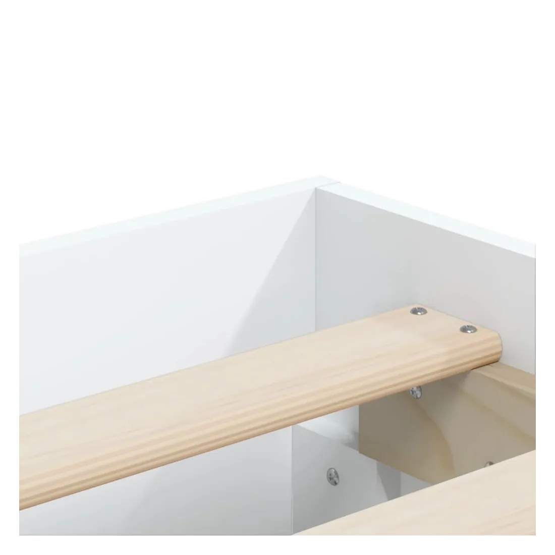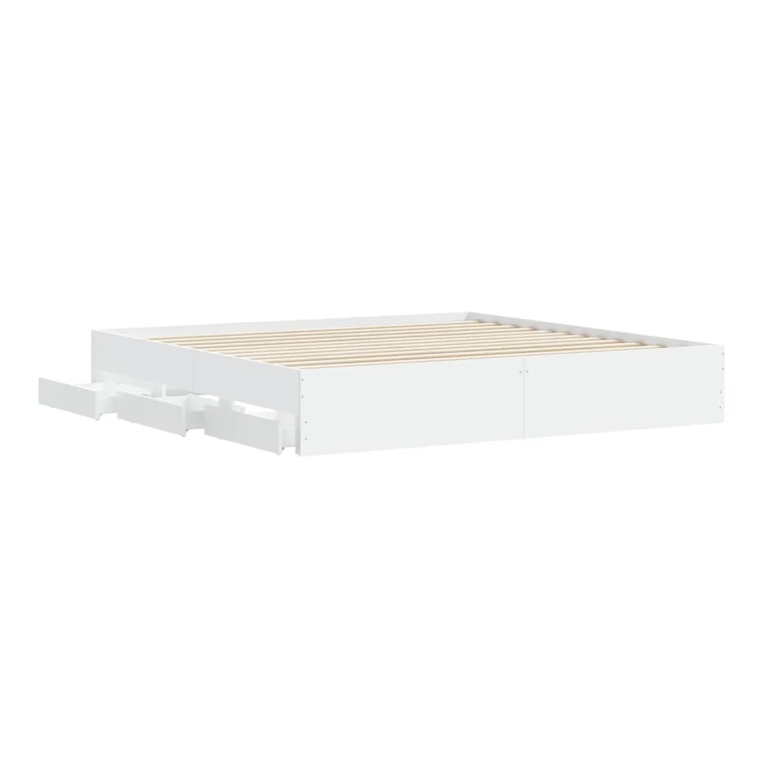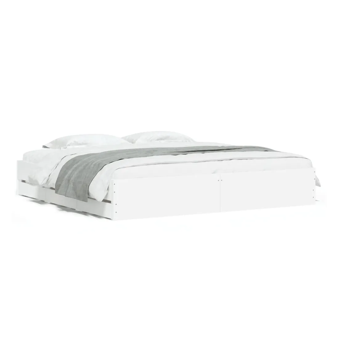 Ajoutez une touche moderne à votre chambre à coucher avec ce cadre de lit avec tiroirs ! Il apportera une touche pratique et décorative à votre espace de vie. Matériau durable : le cadre de lit est fabriquée en bois d'ingénierie. Le bois d'ingénierie est d'une qualité exceptionnelle avec une surface lisse et présente également de la résistance, de la stabilité et de la résistance à l'humidité.Lattes robustes : les lattes de contreplaqué assurent une bonne répartition du poids, garantissant que le matelas reste en place à chaque torsion de votre corps pendant le sommeil.Fonction de rangement : les tiroirs de lit inclus offrent suffisamment d'espace de rangement pour ranger vos articles essentiels, gardant votre pièce propre et bien rangée. Bon à savoir :Un matelas n'est pas inclus avec ce lit. Nous offrons une sélection variée de matelas. Vous pouvez consulter notre boutique pour trouver un matelas assorti.