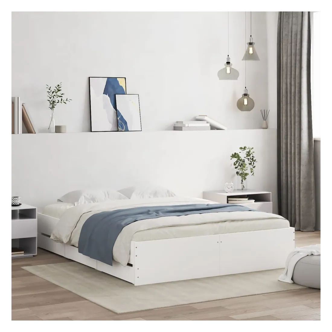 Ajoutez une touche moderne à votre chambre à coucher avec ce cadre de lit avec tiroirs ! Il apportera une touche pratique et décorative à votre espace de vie. Matériau durable : le cadre de lit est fabriquée en bois d'ingénierie. Le bois d'ingénierie est d'une qualité exceptionnelle avec une surface lisse et présente également de la résistance, de la stabilité et de la résistance à l'humidité.Lattes robustes : les lattes de contreplaqué assurent une bonne répartition du poids, garantissant que le matelas reste en place à chaque torsion de votre corps pendant le sommeil.Fonction de rangement : les tiroirs de lit inclus offrent suffisamment d'espace de rangement pour ranger vos articles essentiels, gardant votre pièce propre et bien rangée. Bon à savoir :Un matelas n'est pas inclus avec ce lit. Nous offrons une sélection variée de matelas. Vous pouvez consulter notre boutique pour trouver un matelas assorti.