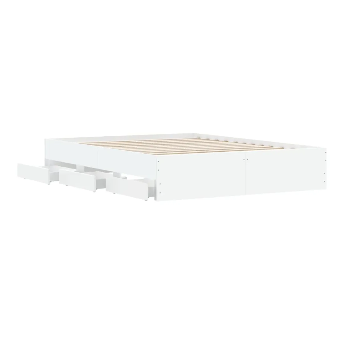 Ajoutez une touche moderne à votre chambre à coucher avec ce cadre de lit avec tiroirs ! Il apportera une touche pratique et décorative à votre espace de vie. Matériau durable : le cadre de lit est fabriquée en bois d'ingénierie. Le bois d'ingénierie est d'une qualité exceptionnelle avec une surface lisse et présente également de la résistance, de la stabilité et de la résistance à l'humidité.Lattes robustes : les lattes de contreplaqué assurent une bonne répartition du poids, garantissant que le matelas reste en place à chaque torsion de votre corps pendant le sommeil.Fonction de rangement : les tiroirs de lit inclus offrent suffisamment d'espace de rangement pour ranger vos articles essentiels, gardant votre pièce propre et bien rangée. Bon à savoir :Un matelas n'est pas inclus avec ce lit. Nous offrons une sélection variée de matelas. Vous pouvez consulter notre boutique pour trouver un matelas assorti.