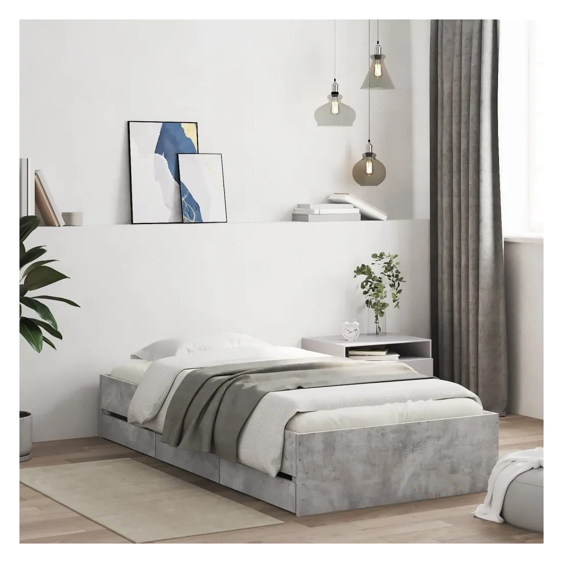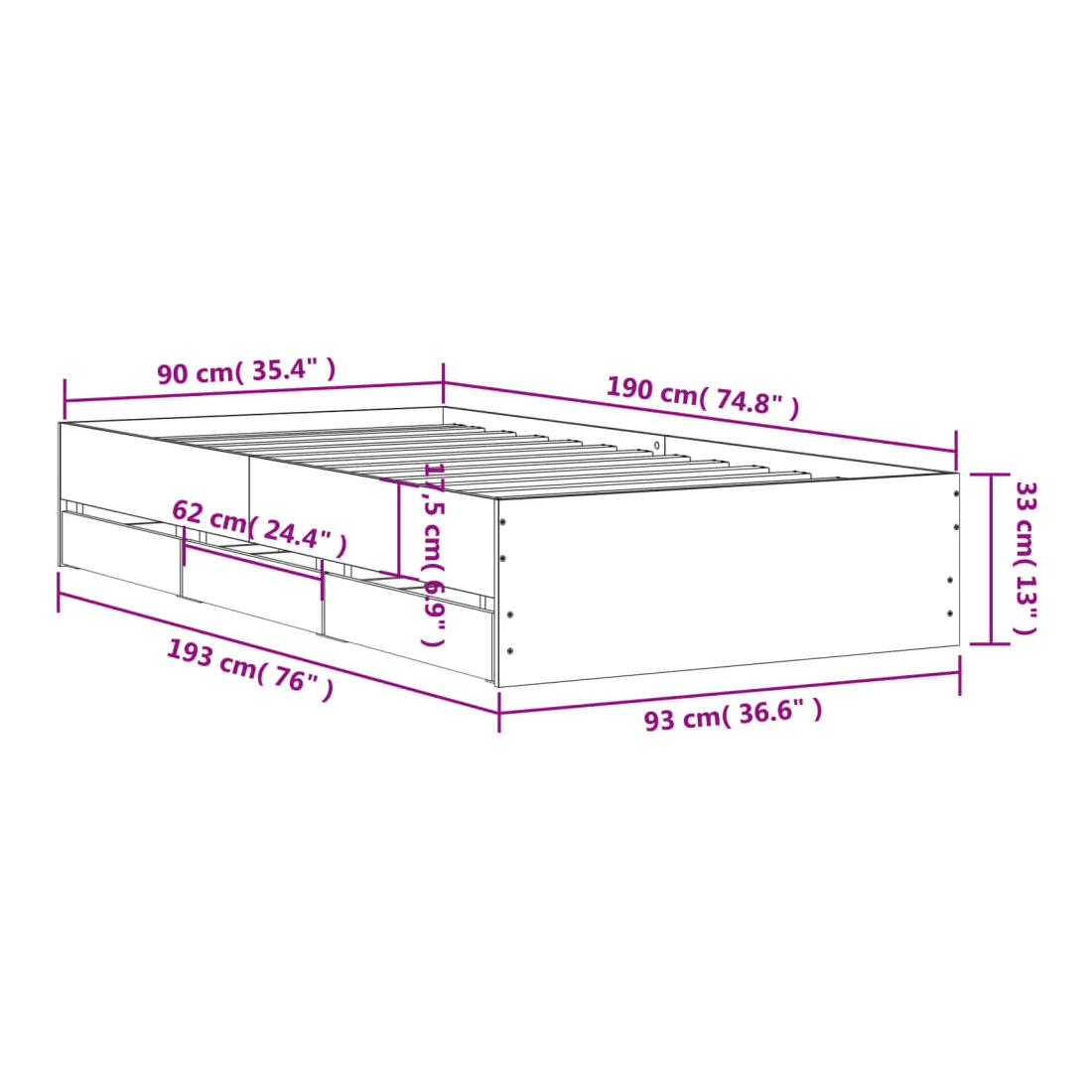 Ajoutez une touche moderne à votre chambre à coucher avec ce cadre de lit avec tiroirs ! Il apportera une touche pratique et décorative à votre espace de vie. Matériau durable : le cadre de lit est fabriquée en bois d'ingénierie. Le bois d'ingénierie est d'une qualité exceptionnelle avec une surface lisse et présente également de la résistance, de la stabilité et de la résistance à l'humidité.Lattes robustes : les lattes de contreplaqué assurent une bonne répartition du poids, garantissant que le matelas reste en place à chaque torsion de votre corps pendant le sommeil.Fonction de rangement : les tiroirs de lit inclus offrent suffisamment d'espace de rangement pour ranger vos articles essentiels, gardant votre pièce propre et bien rangée. Bon à savoir :Un matelas n'est pas inclus avec ce lit. Nous offrons une sélection variée de matelas. Vous pouvez consulter notre boutique pour trouver un matelas assorti.
