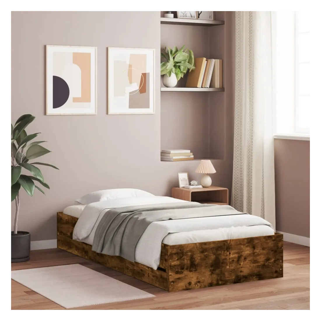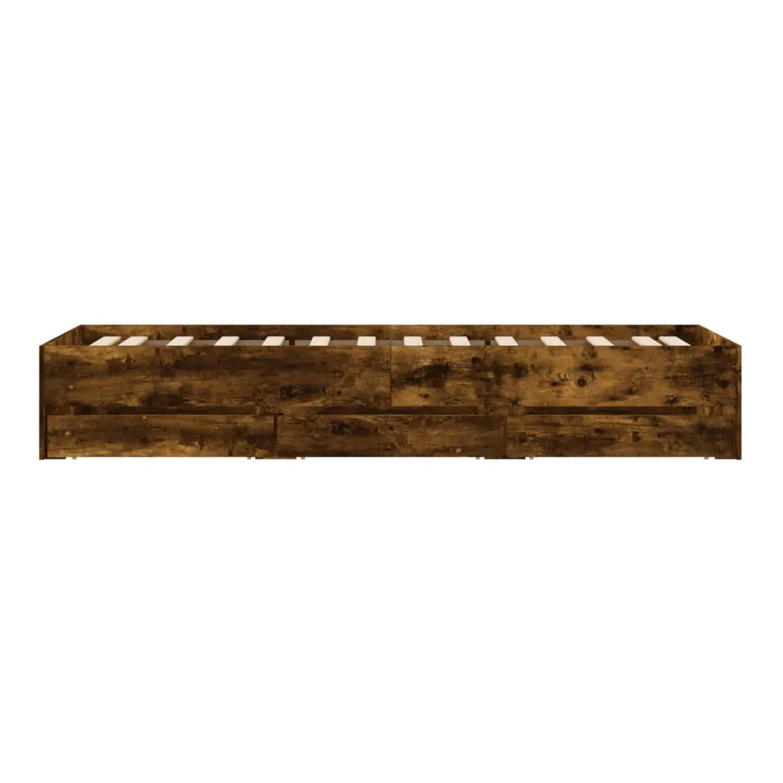 Ajoutez une touche moderne à votre chambre à coucher avec ce cadre de lit avec tiroirs ! Il apportera une touche pratique et décorative à votre espace de vie. Matériau durable : le cadre de lit est fabriquée en bois d'ingénierie. Le bois d'ingénierie est d'une qualité exceptionnelle avec une surface lisse et présente également de la résistance, de la stabilité et de la résistance à l'humidité.Lattes robustes : les lattes de contreplaqué assurent une bonne répartition du poids, garantissant que le matelas reste en place à chaque torsion de votre corps pendant le sommeil.Fonction de rangement : les tiroirs de lit inclus offrent suffisamment d'espace de rangement pour ranger vos articles essentiels, gardant votre pièce propre et bien rangée. Bon à savoir :Un matelas n'est pas inclus avec ce lit. Nous offrons une sélection variée de matelas. Vous pouvez consulter notre boutique pour trouver un matelas assorti.