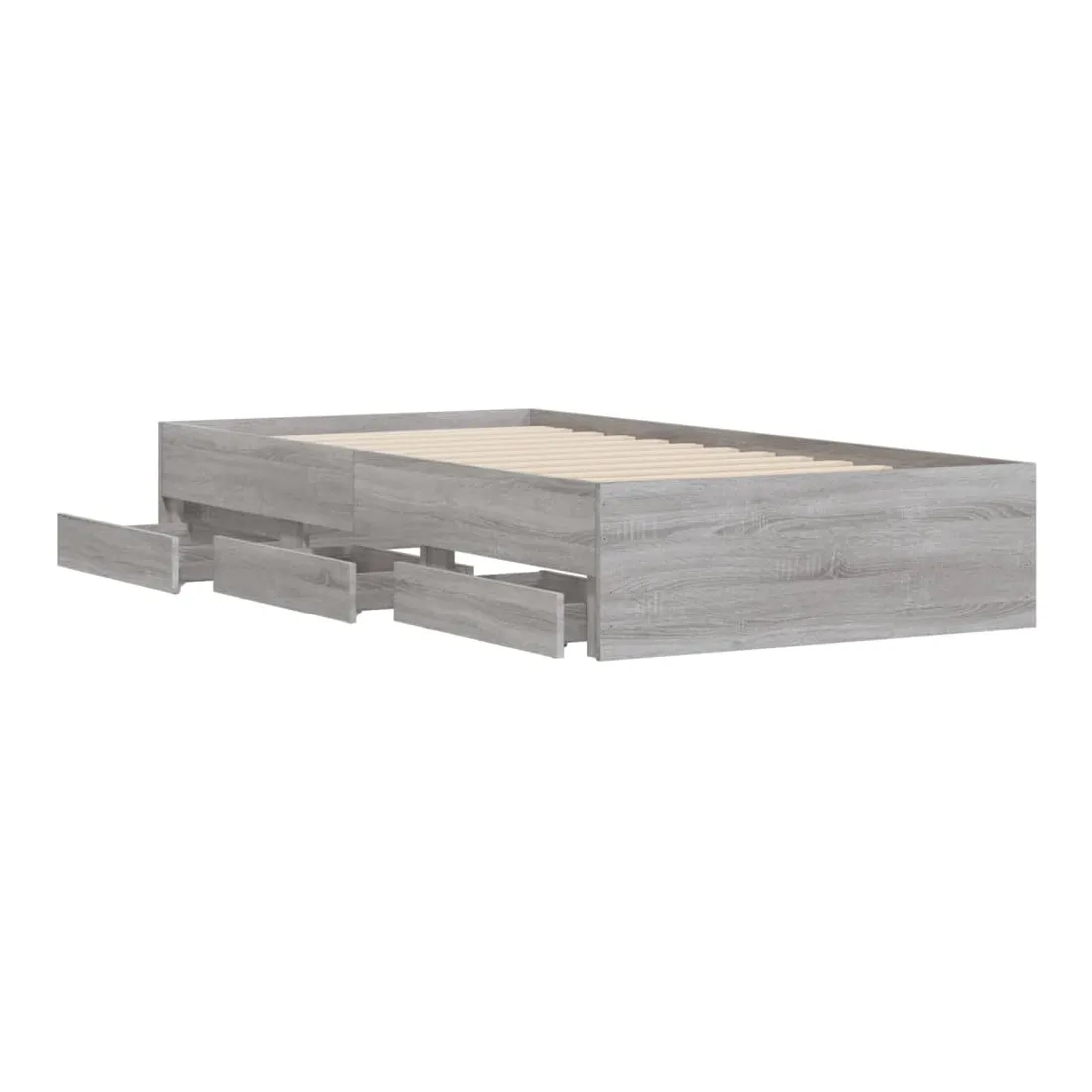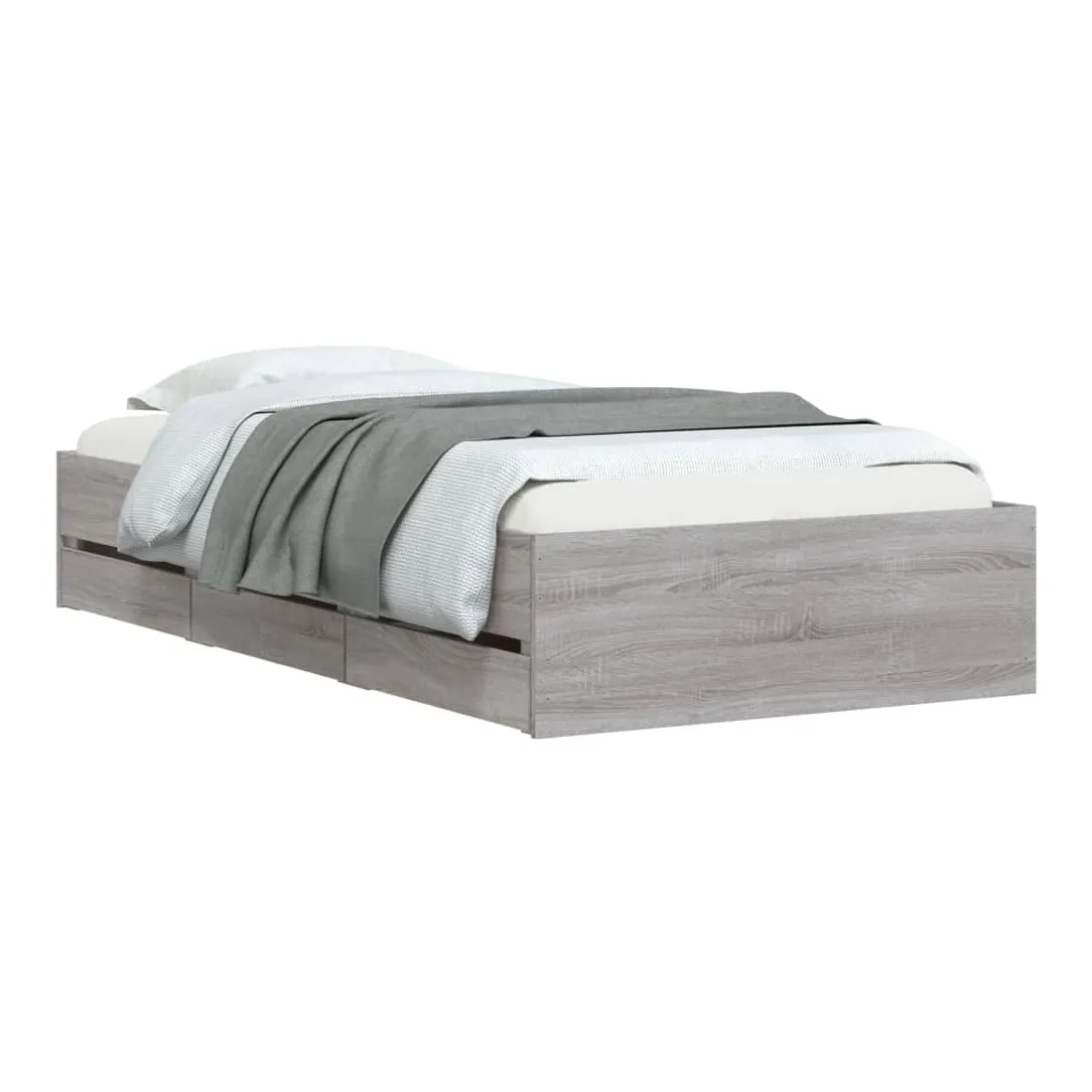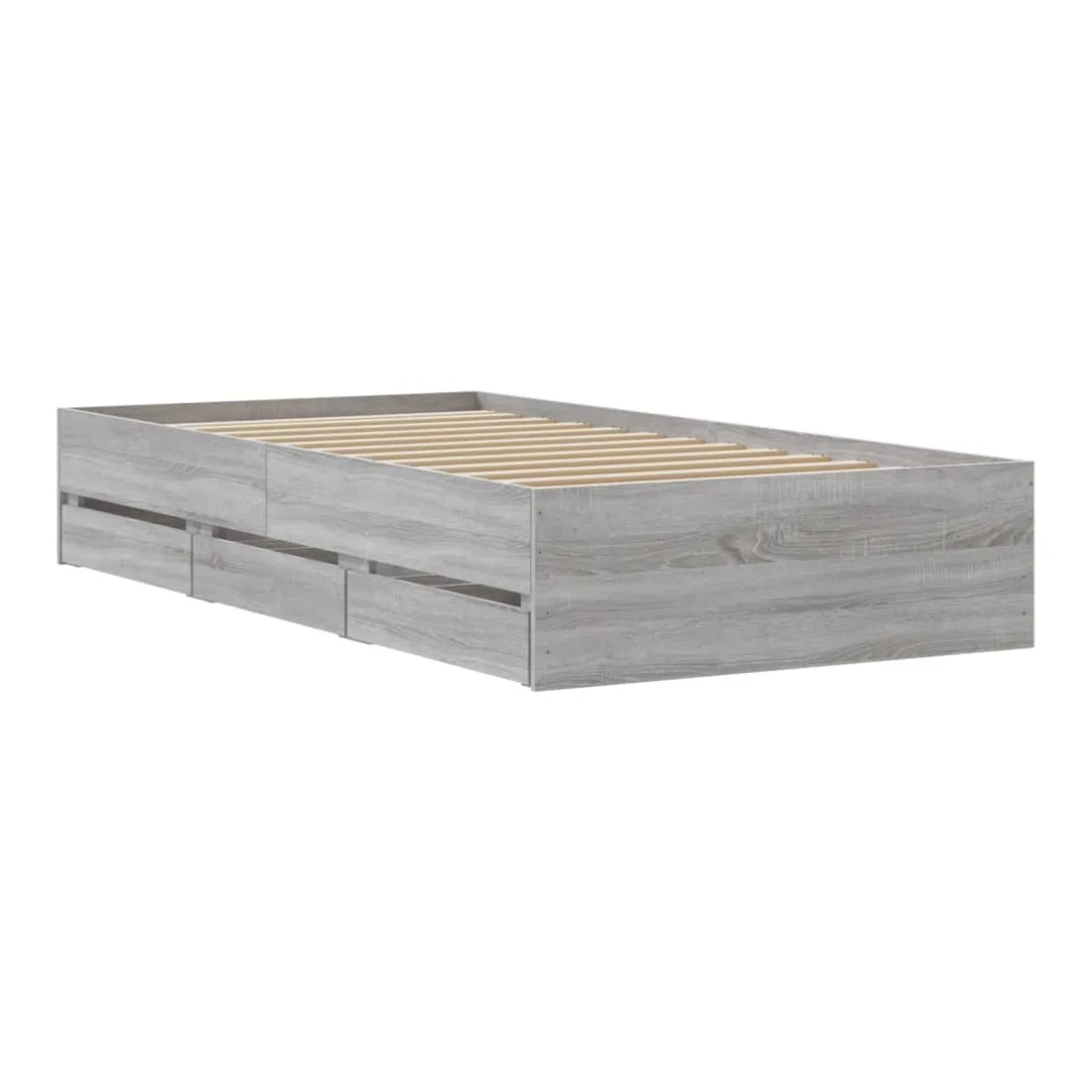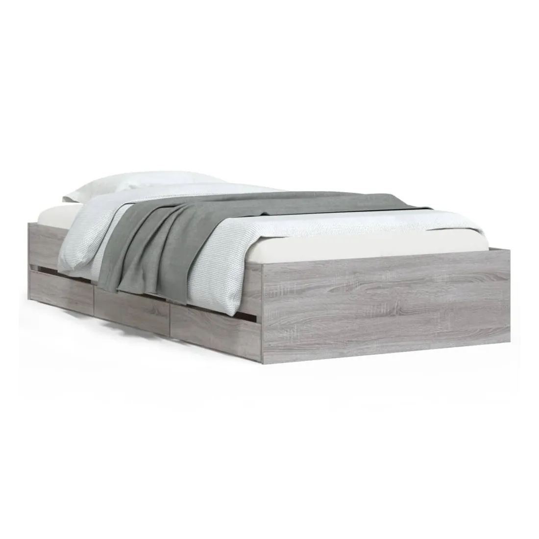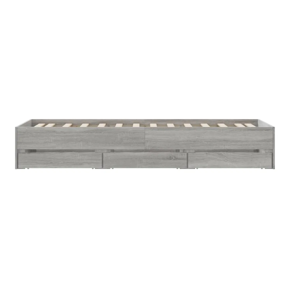 Ajoutez une touche moderne à votre chambre à coucher avec ce cadre de lit avec tiroirs ! Il apportera une touche pratique et décorative à votre espace de vie. Matériau durable : le cadre de lit est fabriquée en bois d'ingénierie. Le bois d'ingénierie est d'une qualité exceptionnelle avec une surface lisse et présente également de la résistance, de la stabilité et de la résistance à l'humidité.Lattes robustes : les lattes de contreplaqué assurent une bonne répartition du poids, garantissant que le matelas reste en place à chaque torsion de votre corps pendant le sommeil.Fonction de rangement : les tiroirs de lit inclus offrent suffisamment d'espace de rangement pour ranger vos articles essentiels, gardant votre pièce propre et bien rangée. Bon à savoir :Un matelas n'est pas inclus avec ce lit. Nous offrons une sélection variée de matelas. Vous pouvez consulter notre boutique pour trouver un matelas assorti.