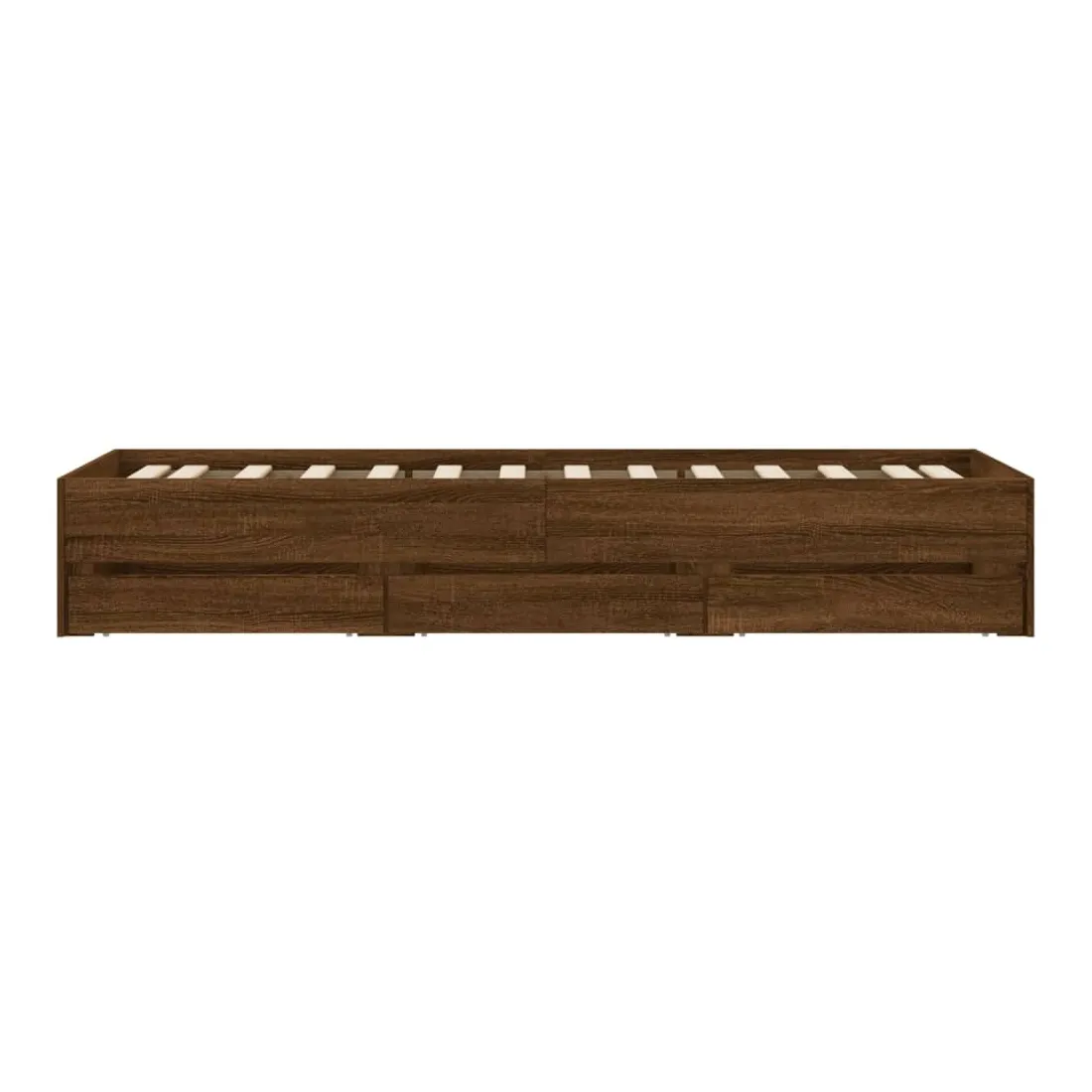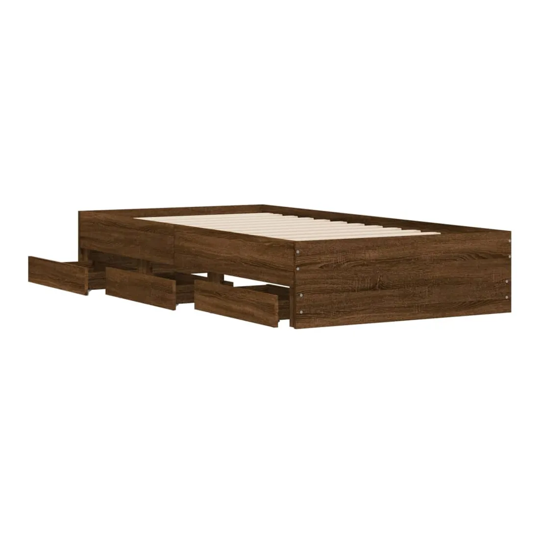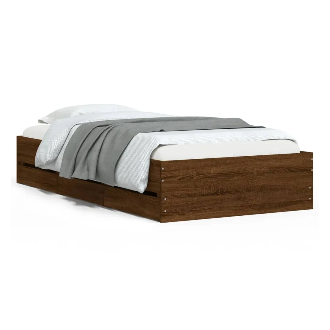 Ajoutez une touche moderne à votre chambre à coucher avec ce cadre de lit avec tiroirs ! Il apportera une touche pratique et décorative à votre espace de vie. Matériau durable : le cadre de lit est fabriquée en bois d'ingénierie. Le bois d'ingénierie est d'une qualité exceptionnelle avec une surface lisse et présente également de la résistance, de la stabilité et de la résistance à l'humidité.Lattes robustes : les lattes de contreplaqué assurent une bonne répartition du poids, garantissant que le matelas reste en place à chaque torsion de votre corps pendant le sommeil.Fonction de rangement : les tiroirs de lit inclus offrent suffisamment d'espace de rangement pour ranger vos articles essentiels, gardant votre pièce propre et bien rangée. Bon à savoir :Un matelas n'est pas inclus avec ce lit. Nous offrons une sélection variée de matelas. Vous pouvez consulter notre boutique pour trouver un matelas assorti.