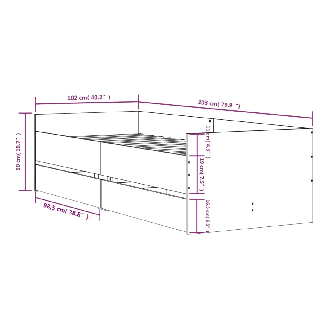 Cadre de lit avec tiroirs sans matelas sonoma gris 100x200 cm