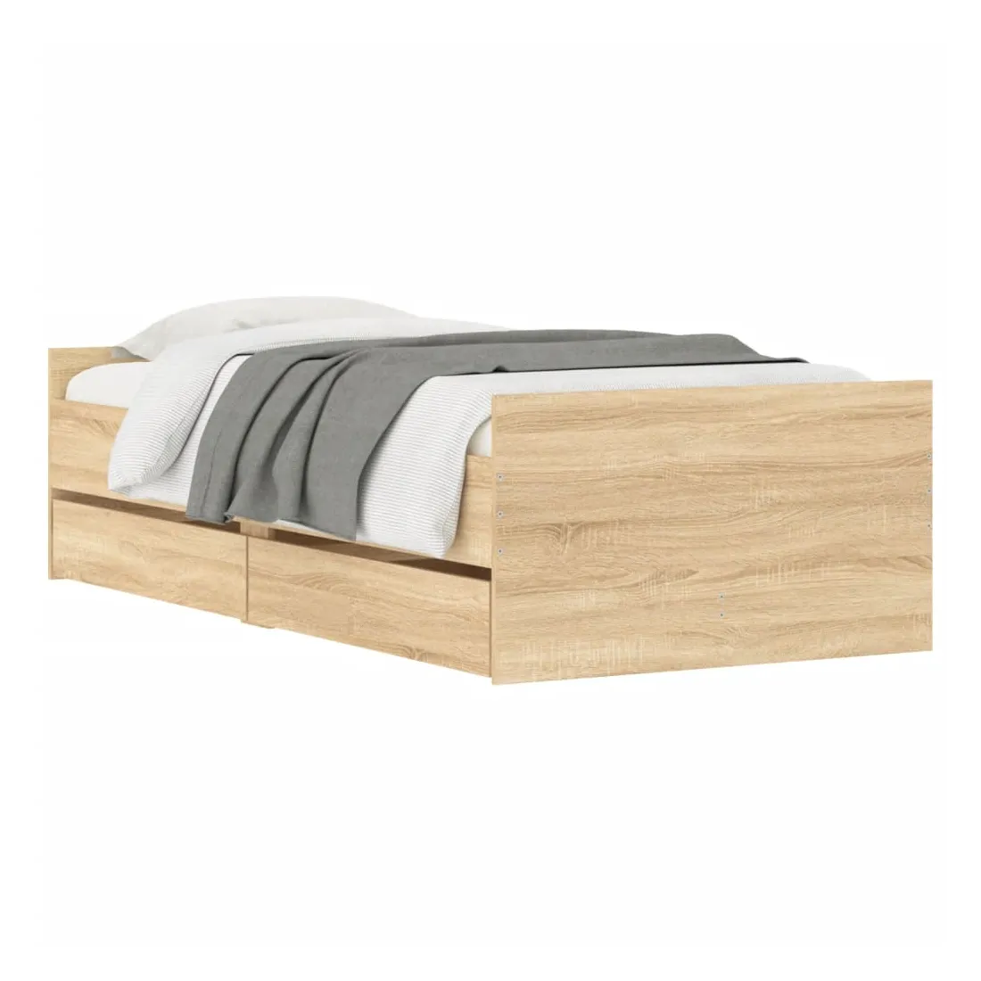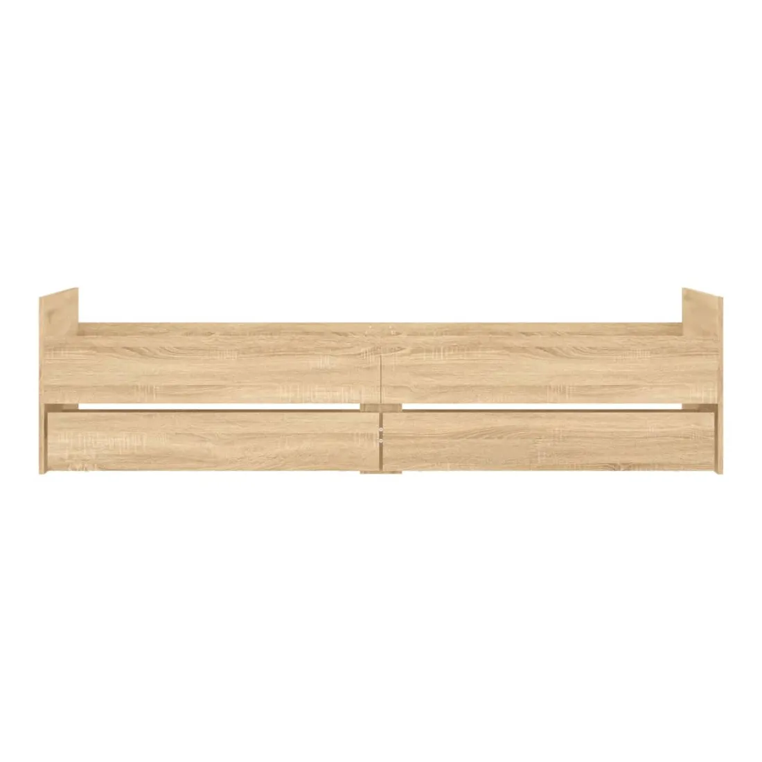Ajoutez une touche moderne à votre chambre à coucher avec ce cadre de lit avec tiroirs ! Il apportera une touche pratique et décorative à votre espace de vie. Matériau durable : le cadre de lit est fabriquée en bois d'ingénierie. Le bois d'ingénierie est d'une qualité exceptionnelle avec une surface lisse et présente également de la résistance, de la stabilité et de la résistance à l'humidité.Lattes robustes : les lattes de contreplaqué assurent une bonne répartition du poids, garantissant que le matelas reste en place à chaque torsion de votre corps pendant le sommeil.Fonction de rangement : les tiroirs de lit inclus offrent suffisamment d'espace de rangement pour ranger vos articles essentiels, gardant votre pièce propre et bien rangée. Bon à savoir :Un matelas n'est pas inclus avec ce lit. Nous offrons une sélection variée de matelas. Vous pouvez consulter notre boutique pour trouver un matelas assorti.