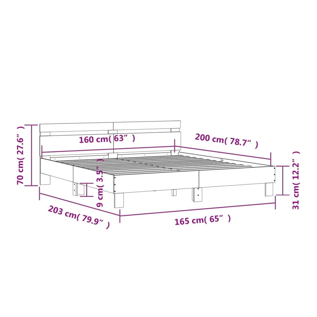 - Dimensions du matelas correspondant : 160 x 200 cm (l x L) (matelas non inclus)
