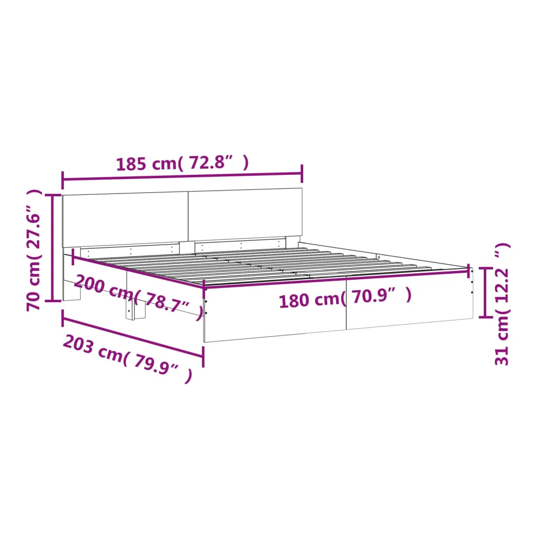 - Dimensions du matelas correspondant : 180 x 200 cm (l x L) (matelas non inclus)