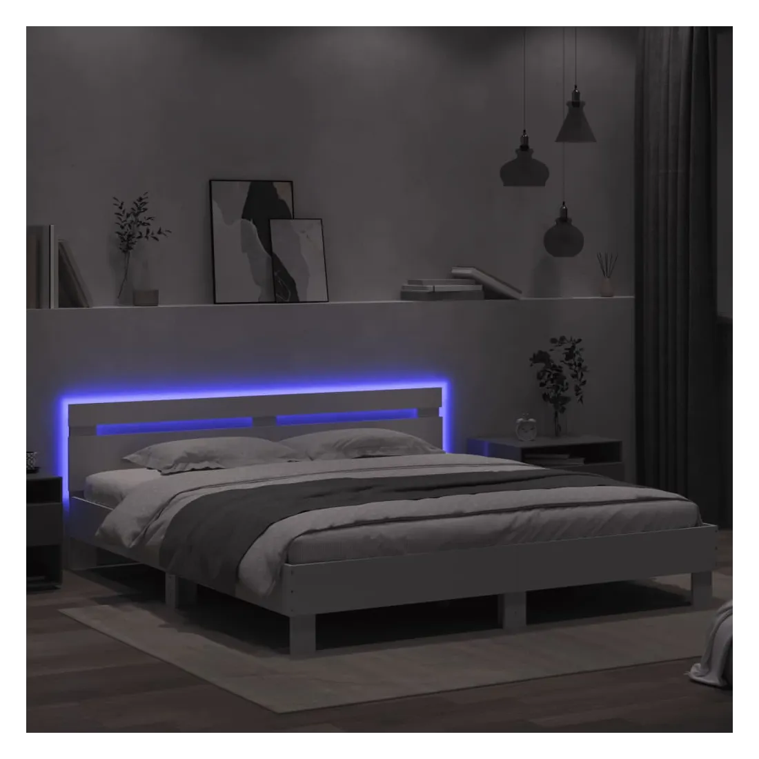 Obtenez une meilleure nuit de sommeil reposante grâce à ce cadre de lit avec LED ! Il est un supplément accueillant à toute chambre à coucher. Matériau durable : le bois d'ingénierie est d'une qualité exceptionnelle avec une surface lisse et présente également résistance, stabilité et résistance à l'humidité.Lumières LED RVB : le lit est équipé de lumières LED RVB vibrantes. Avec divers menus personnalisables, vous pouvez changer sans effort la couleur des lumières et même les régler automatiquement. Ces lumières LED renforcent non seulement l'aspect contemporain du sommier, mais ajoutent également à son attrait tendance.Excellent soutien : la tête de lit vous offre un excellent soutien du dos lorsque vous êtes assis dans votre lit pour lire ou regarder la télévision.Lattes robustes : les lattes de contreplaqué assurent une bonne répartition du poids, garantissant que le matelas reste en place à chaque torsion de votre corps pendant le sommeil. Bon à savoir :Un matelas n'est pas inclus avec ce lit. Nous offrons une sélection variée de matelas. Vous pouvez consulter notre boutique pour trouver un matelas assorti.Ce produit est doté d'un connecteur USB qui nécessite une source d'alimentation USB de 5V certifiée (non incluse).