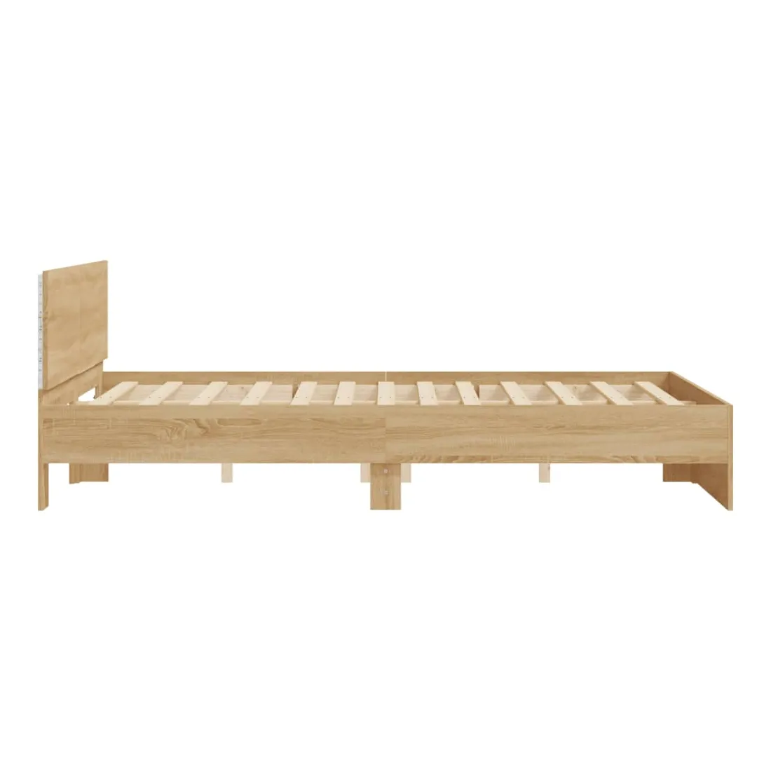 Obtenez une meilleure nuit de sommeil reposante grâce à ce cadre de lit avec LED ! Il est un supplément accueillant à toute chambre à coucher. Matériau durable : le bois d'ingénierie est d'une qualité exceptionnelle avec une surface lisse et présente également résistance, stabilité et résistance à l'humidité.Lumières LED RVB : le lit est équipé de lumières LED RVB vibrantes. Avec divers menus personnalisables, vous pouvez changer sans effort la couleur des lumières et même les régler automatiquement. Ces lumières LED renforcent non seulement l'aspect contemporain du lit, mais ajoutent également à son attrait tendance.Excellent soutien : la tête de lit vous offre un excellent soutien du dos lorsque vous êtes assis dans votre lit pour lire ou regarder la télévision.Lattes robustes : les lattes de contreplaqué assurent une bonne répartition du poids, garantissant que le matelas reste en place à chaque torsion de votre corps pendant le sommeil. Bon à savoir :Un matelas n'est pas inclus avec ce lit. Nous offrons une sélection variée de matelas. Vous pouvez consulter notre boutique pour trouver un matelas assorti.Ce produit est doté d'un connecteur USB qui nécessite une source d'alimentation certifiée de USB 5V (non incluse).