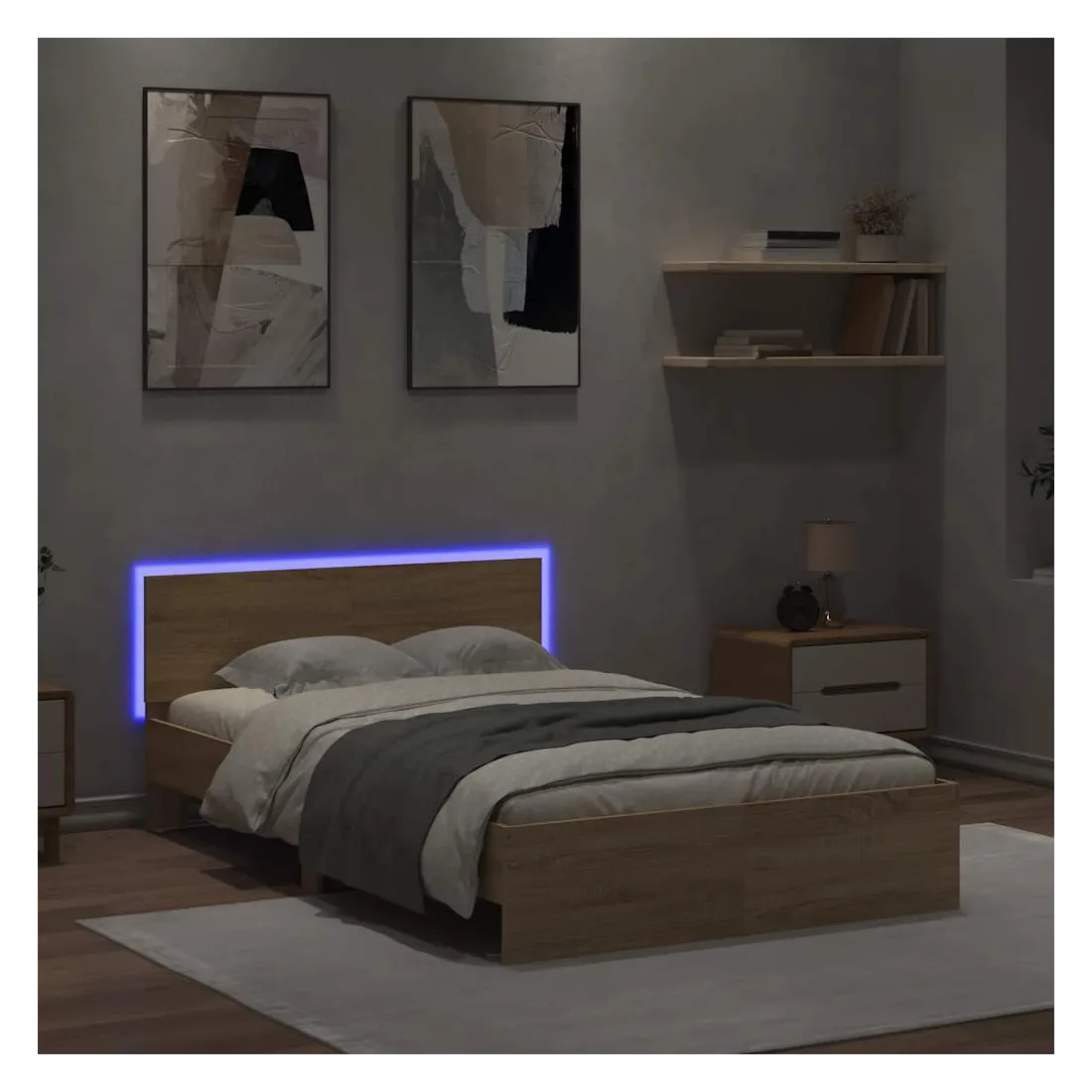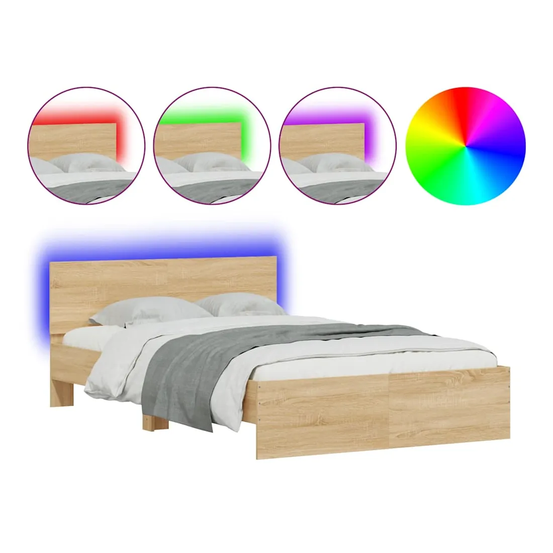 Obtenez une meilleure nuit de sommeil reposante grâce à ce cadre de lit avec LED ! Il est un supplément accueillant à toute chambre à coucher. Matériau durable : le bois d'ingénierie est d'une qualité exceptionnelle avec une surface lisse et présente également résistance, stabilité et résistance à l'humidité.Lumières LED RVB : le lit est équipé de lumières LED RVB vibrantes. Avec divers menus personnalisables, vous pouvez changer sans effort la couleur des lumières et même les régler automatiquement. Ces lumières LED renforcent non seulement l'aspect contemporain du lit, mais ajoutent également à son attrait tendance.Excellent soutien : la tête de lit vous offre un excellent soutien du dos lorsque vous êtes assis dans votre lit pour lire ou regarder la télévision.Lattes robustes : les lattes de contreplaqué assurent une bonne répartition du poids, garantissant que le matelas reste en place à chaque torsion de votre corps pendant le sommeil. Bon à savoir :Un matelas n'est pas inclus avec ce lit. Nous offrons une sélection variée de matelas. Vous pouvez consulter notre boutique pour trouver un matelas assorti.Ce produit est doté d'un connecteur USB qui nécessite une source d'alimentation USB de 5V certifiée (non incluse).