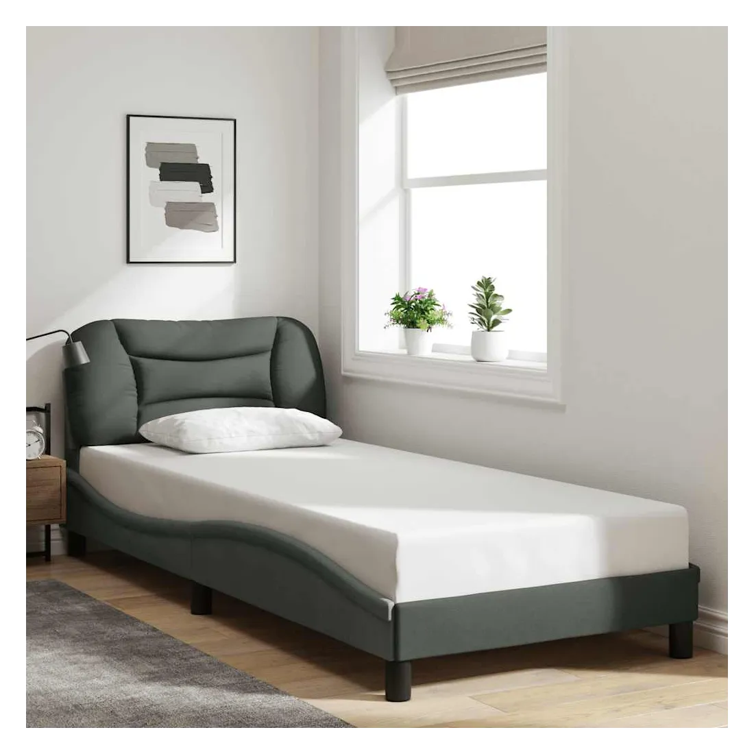 Obtenez une meilleure nuit de sommeil reposante grâce à ce cadre de lit avec tête de lit ! Il est un supplément accueillant à toute chambre à coucher. Tissu durable : le tissu présente un aspect simple et épuré tout en restant respirant, doux pour la peau et durable.Lattes de contreplaqué : les lattes de contreplaqué assurent une bonne répartition du poids, garantissant que le matelas reste en place à chaque torsion de votre corps pendant le sommeil.Excellent soutien : l'oreiller de tête de lit est rembourré avec de la fibre de polypropylène pour un confort ultra doux et optimal vous offre un excellent soutien du dos lorsque vous êtes assis dans votre lit pour lire ou regarder la télévision.Design pratique : le coussin de la tête de lit est doté d'une fermeture à glissière pour faciliter l'installation, et les bandes auto-agrippantes au dos peuvent être utilisées pour fixer les lampes LED.Design latéral ondulé : l’aspect ondulé du cadre de lit est élégant et sophistiqué, ajoutant une touche moderne et élégante à votre décor, ce qui en fait le point central de votre chambre à coucher. Bon à savoir :Un matelas n'est pas inclus avec ce lit. Nous offrons une sélection variée de matelas. Vous pouvez consulter notre boutique pour trouver un matelas assorti.