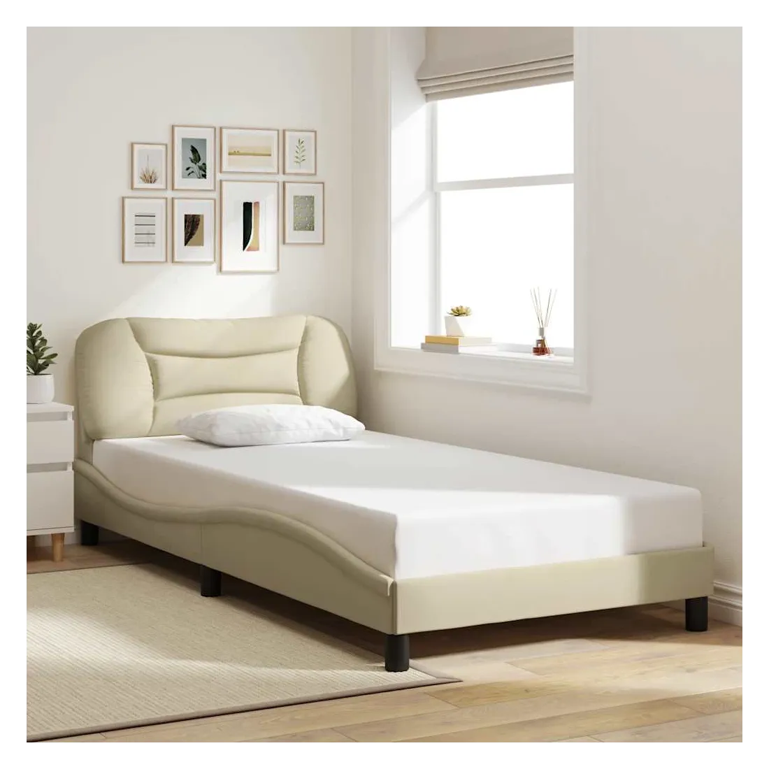 Obtenez une meilleure nuit de sommeil reposante grâce à ce cadre de lit avec tête de lit ! Il est un supplément accueillant à toute chambre à coucher. Tissu durable : le tissu présente un aspect simple et épuré tout en restant respirant, doux pour la peau et durable.Lattes de contreplaqué : les lattes de contreplaqué assurent une bonne répartition du poids, garantissant que le matelas reste en place à chaque torsion de votre corps pendant le sommeil.Excellent soutien : l'oreiller de tête de lit est rembourré avec de la fibre de polypropylène pour un confort ultra doux et optimal vous offre un excellent soutien du dos lorsque vous êtes assis dans votre lit pour lire ou regarder la télévision.Design pratique : le coussin de la tête de lit est doté d'une fermeture à glissière pour faciliter l'installation, et les bandes auto-agrippantes au dos peuvent être utilisées pour fixer les lampes LED.Design latéral ondulé : l’aspect ondulé du cadre de lit est élégant et sophistiqué, ajoutant une touche moderne et élégante à votre décor, ce qui en fait le point central de votre chambre à coucher. Bon à savoir :Un matelas n'est pas inclus avec ce lit. Nous offrons une sélection variée de matelas. Vous pouvez consulter notre boutique pour trouver un matelas assorti.
