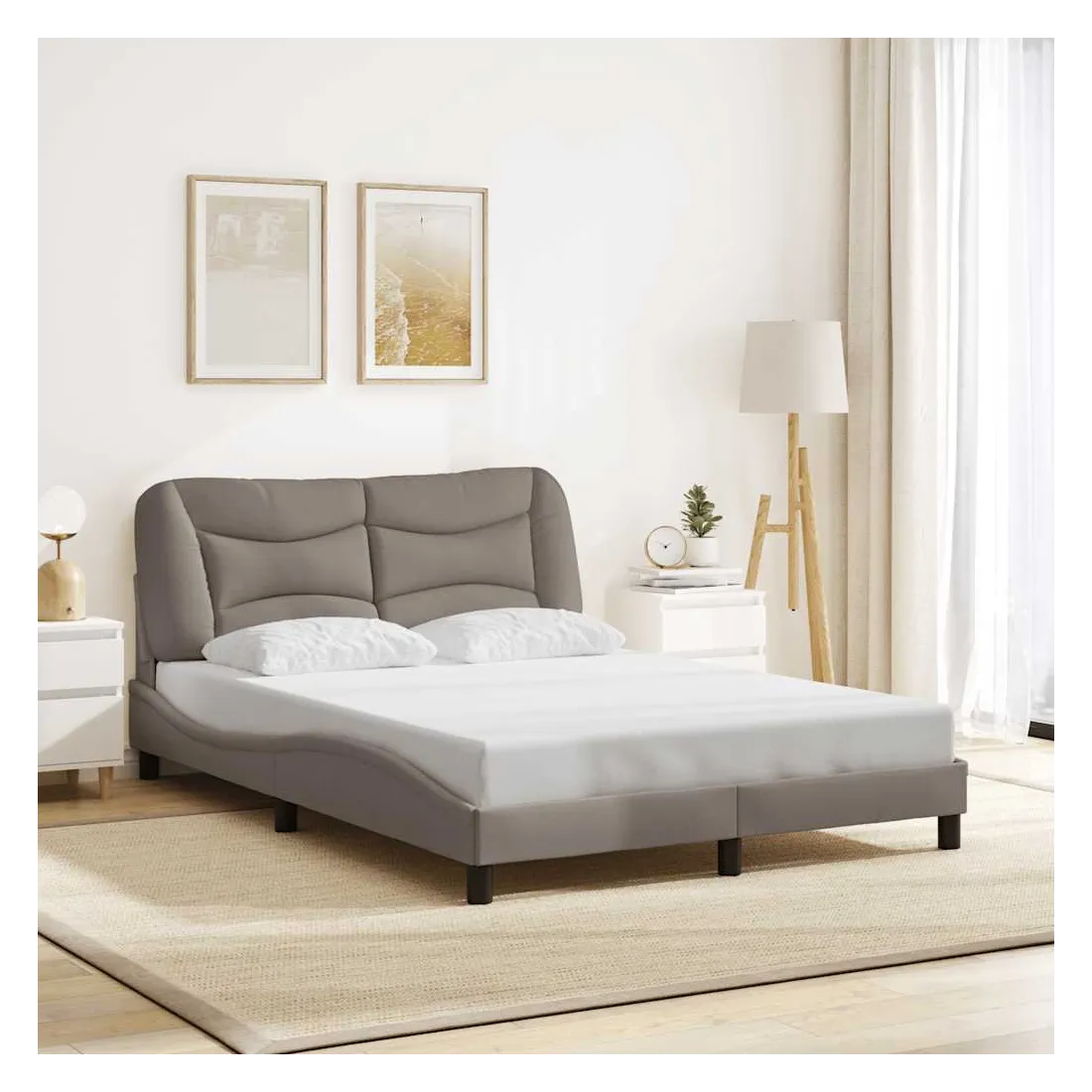 Obtenez une meilleure nuit de sommeil reposante grâce à ce cadre de lit avec tête de lit ! Il est un supplément accueillant à toute chambre à coucher. Tissu durable : le tissu présente un aspect simple et épuré tout en restant respirant, doux pour la peau et durable.Lattes de contreplaqué : les lattes de contreplaqué assurent une bonne répartition du poids, garantissant que le matelas reste en place à chaque torsion de votre corps pendant le sommeil.Excellent soutien : l'oreiller de tête de lit est rembourré avec de la fibre de polypropylène pour un confort ultra doux et optimal vous offre un excellent soutien du dos lorsque vous êtes assis dans votre lit pour lire ou regarder la télévision.Design pratique : le coussin de la tête de lit est doté d'une fermeture à glissière pour faciliter l'installation, et les bandes auto-agrippantes au dos peuvent être utilisées pour fixer les lampes LED.Design latéral ondulé : l’aspect ondulé du cadre de lit est élégant et sophistiqué, ajoutant une touche moderne et élégante à votre décor, ce qui en fait le point central de votre chambre à coucher. Bon à savoir :Un matelas n'est pas inclus avec ce lit. Nous offrons une sélection variée de matelas. Vous pouvez consulter notre boutique pour trouver un matelas assorti.