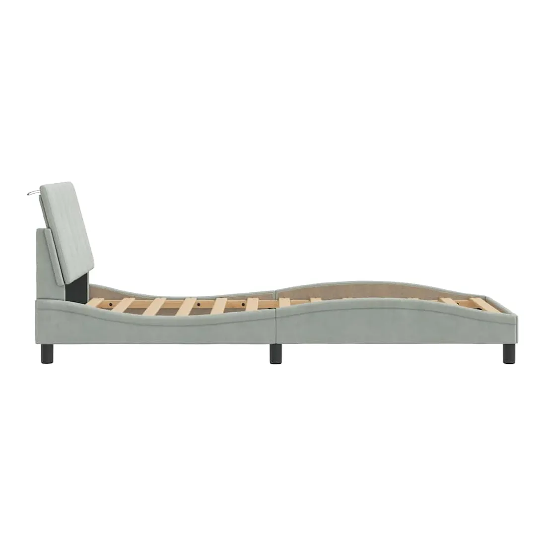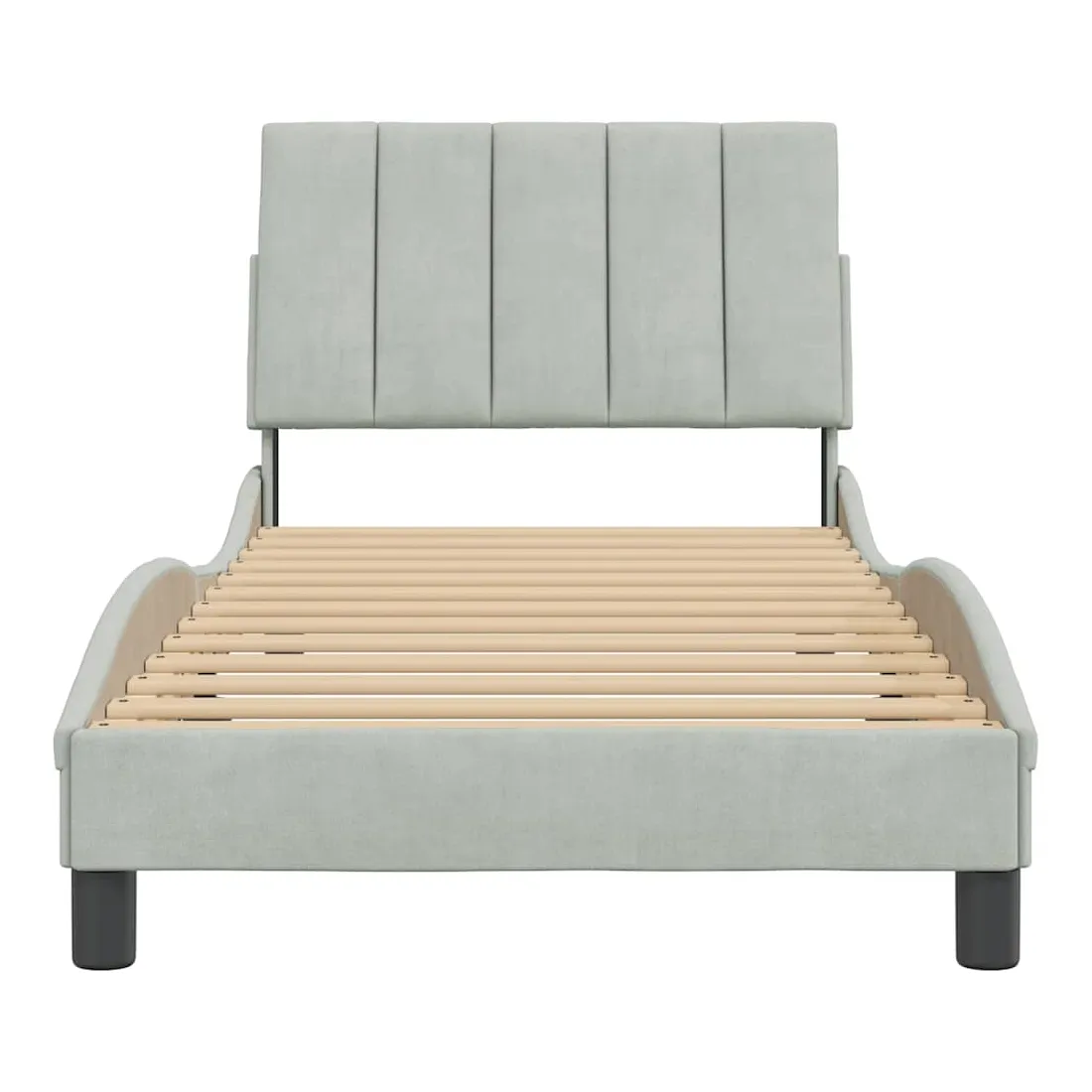 Obtenez une meilleure nuit de sommeil reposante grâce à ce cadre de lit avec tête de lit ! Il est un supplément accueillant à toute chambre à coucher. Velours doux : le velours est un tissu doux et confortable, agréable au toucher.Lattes de contreplaqué : les lattes de contreplaqué assurent une bonne répartition du poids, garantissant que le matelas reste en place à chaque torsion de votre corps pendant le sommeil.Excellent soutien : l'oreiller de tête de lit est rembourré avec de la mousse pour un confort ultra doux et optimal vous offre un excellent soutien du dos lorsque vous êtes assis dans votre lit pour lire ou regarder la télévision.Design pratique : le coussin de la tête de lit est doté d'une fermeture à glissière pour faciliter l'installation, et les bandes auto-agrippantes au dos peuvent être utilisées pour fixer les lampes LED.Design latéral ondulé : l’aspect ondulé du cadre de lit est élégant et sophistiqué, ajoutant une touche moderne et élégante à votre décor, ce qui en fait le point central de votre chambre à coucher. Bon à savoir :Un matelas n'est pas inclus avec ce lit. Nous offrons une sélection variée de matelas. Vous pouvez consulter notre boutique pour trouver un matelas assorti.