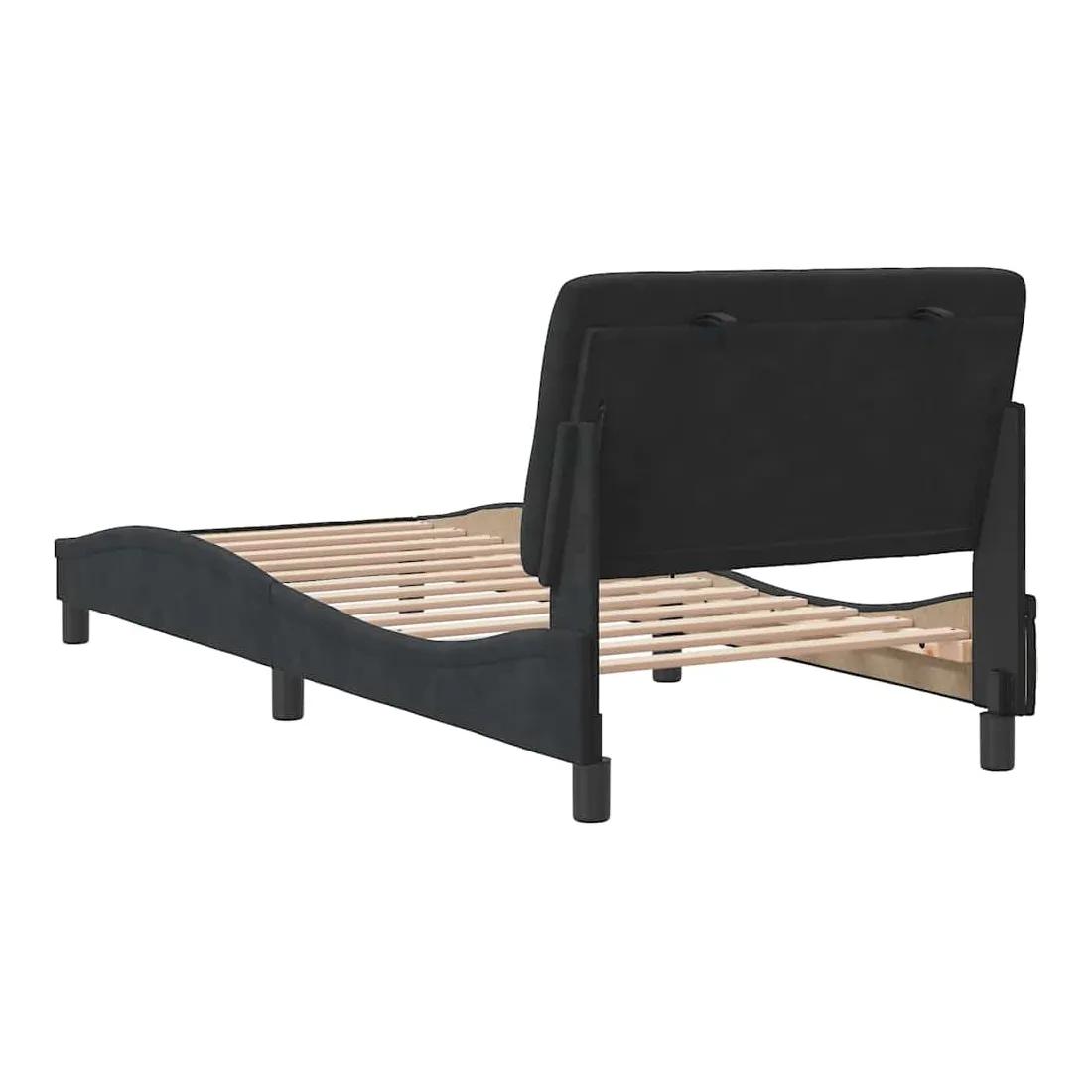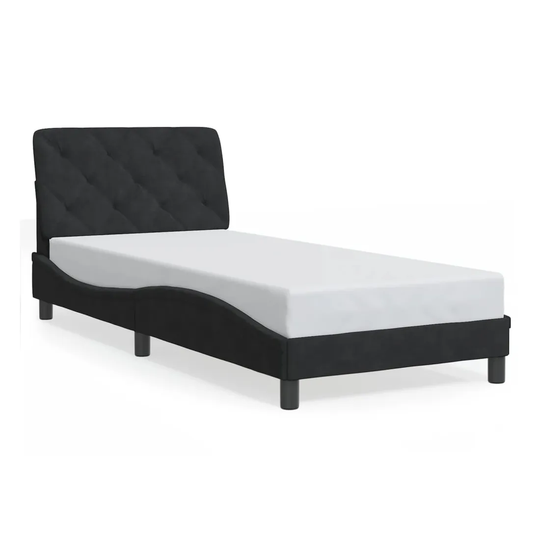Obtenez une meilleure nuit de sommeil reposante grâce à ce cadre de lit avec tête de lit ! Il est un supplément accueillant à toute chambre à coucher. Velours doux : le velours est un tissu doux et confortable, agréable au toucher.Lattes de contreplaqué : les lattes de contreplaqué assurent une bonne répartition du poids, garantissant que le matelas reste en place à chaque torsion de votre corps pendant le sommeil.Excellent soutien : l'oreiller de tête de lit est rembourré avec de la mousse pour un confort ultra doux et optimal vous offre un excellent soutien du dos lorsque vous êtes assis dans votre lit pour lire ou regarder la télévision.Design pratique : le coussin de la tête de lit est doté d'une fermeture à glissière pour faciliter l'installation, et les bandes auto-agrippantes au dos peuvent être utilisées pour fixer les lampes LED.Design latéral ondulé : l’aspect ondulé du cadre de lit est élégant et sophistiqué, ajoutant une touche moderne et élégante à votre décor, ce qui en fait le point central de votre chambre à coucher. Bon à savoir :Un matelas n'est pas inclus avec ce lit. Nous offrons une sélection variée de matelas. Vous pouvez consulter notre boutique pour trouver un matelas assorti.