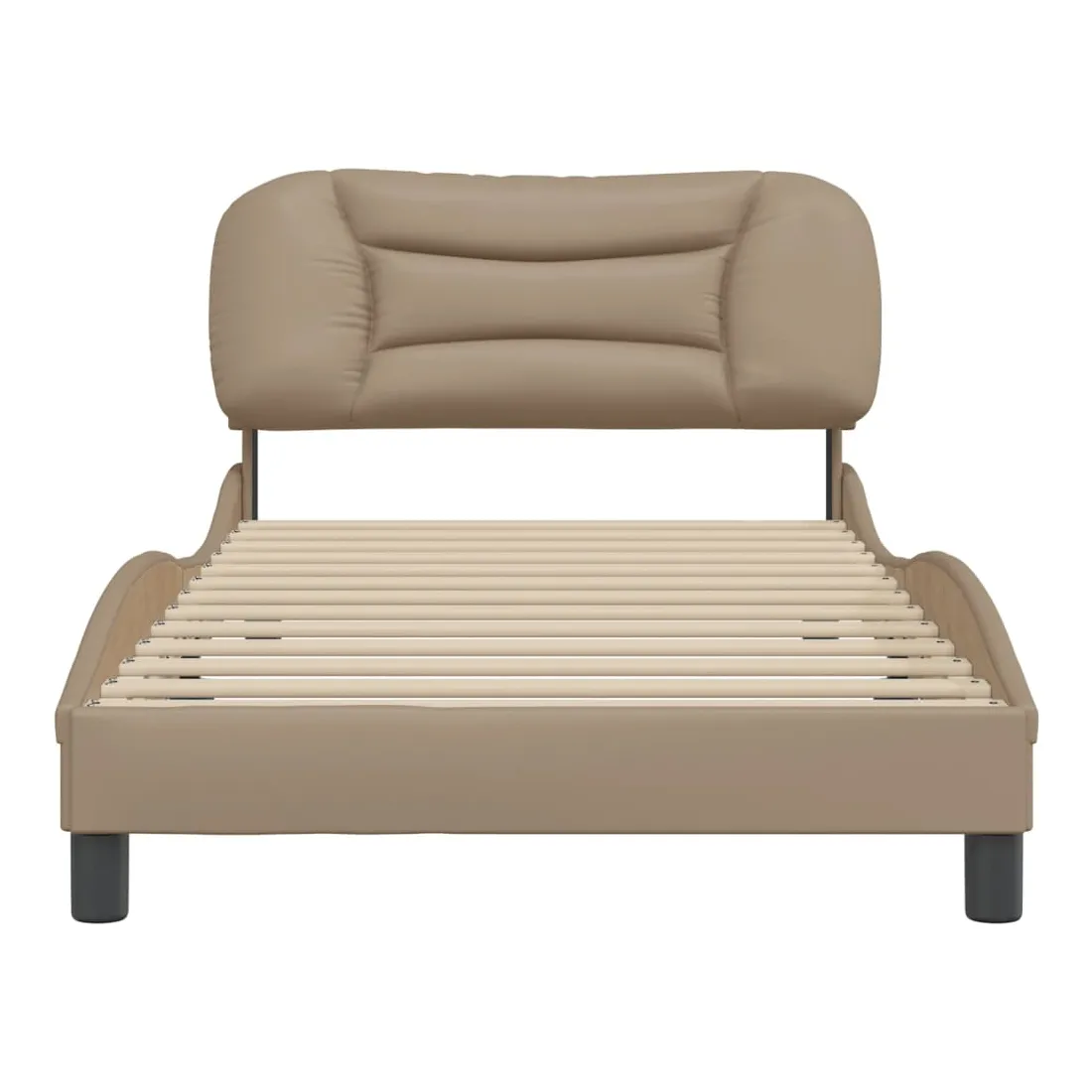 Obtenez une meilleure nuit de sommeil reposante grâce à ce cadre de lit avec tête de lit ! Il est un supplément accueillant à toute chambre à coucher. Similicuir durable : le similicuir de qualité supérieure est un matériau très durable. Il est résistant aux taches, ce qui le rend facile à nettoyer avec un chiffon humide. La surface lisse donne également un aspect luxueux et la beauté du cuir véritable.Lattes de contreplaqué : les lattes de contreplaqué assurent une bonne répartition du poids, garantissant que le matelas reste en place à chaque torsion de votre corps pendant le sommeil.Excellent soutien : l'oreiller de tête de lit est rembourré avec de la fibre de polypropylène pour un confort ultra doux et optimal vous offre un excellent soutien du dos lorsque vous êtes assis dans votre lit pour lire ou regarder la télévision.Design latéral ondulé : l’aspect ondulé du cadre de lit est élégant et sophistiqué, ajoutant une touche moderne et élégante à votre décor, ce qui en fait le point central de votre chambre à coucher. Bon à savoir :Un matelas n'est pas inclus avec ce lit. Nous offrons une sélection variée de matelas. Vous pouvez consulter notre boutique pour trouver un matelas assorti.