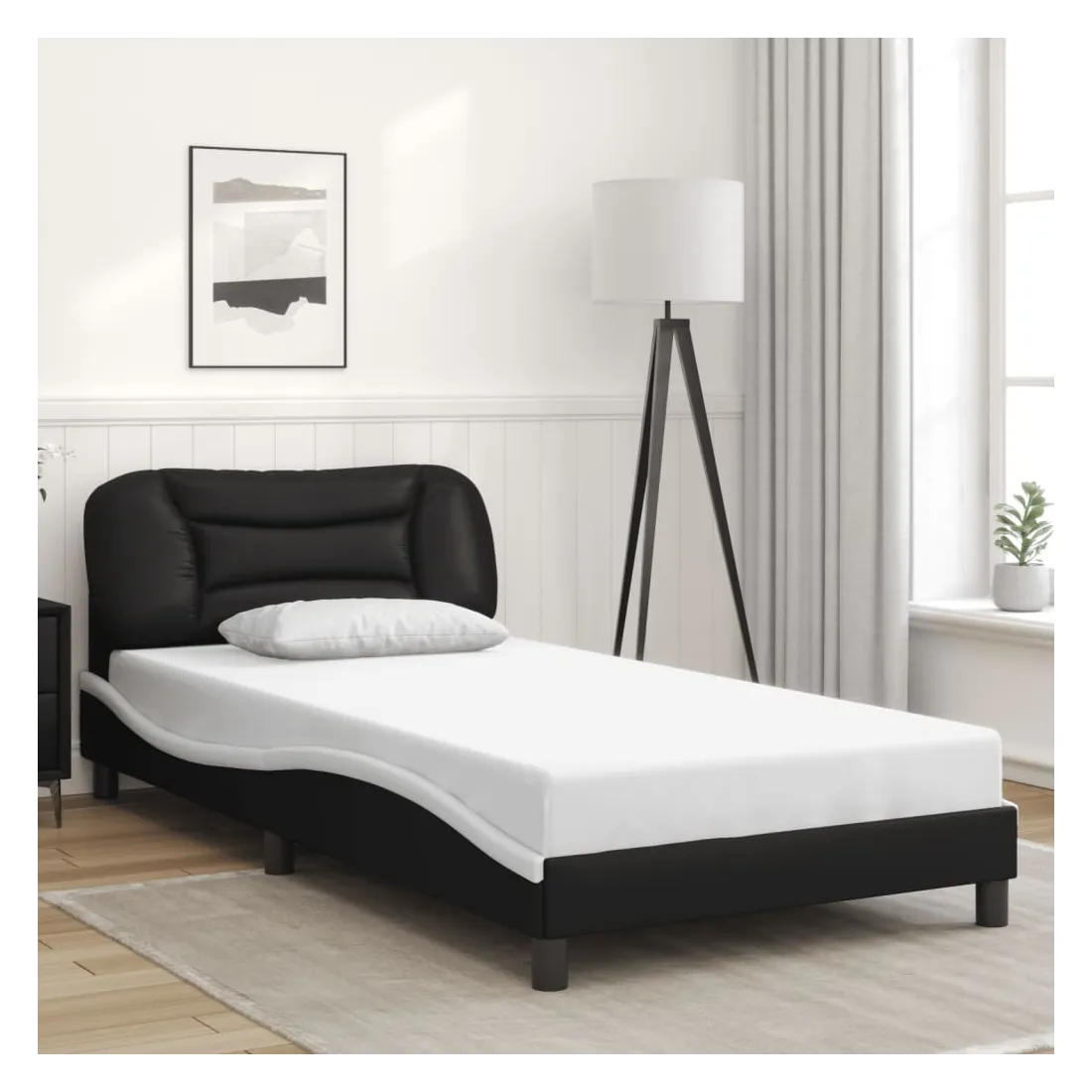 Obtenez une meilleure nuit de sommeil reposante grâce à ce cadre de lit avec tête de lit ! Il est un supplément accueillant à toute chambre à coucher. Similicuir durable : le similicuir de qualité supérieure est un matériau très durable. Il est résistant aux taches, ce qui le rend facile à nettoyer avec un chiffon humide. La surface lisse donne également un aspect luxueux et la beauté du cuir véritable.Lattes de contreplaqué : les lattes de contreplaqué assurent une bonne répartition du poids, garantissant que le matelas reste en place à chaque torsion de votre corps pendant le sommeil.Excellent soutien : l'oreiller de tête de lit est rembourré avec de la fibre de polypropylène pour un confort ultra doux et optimal vous offre un excellent soutien du dos lorsque vous êtes assis dans votre lit pour lire ou regarder la télévision.Design latéral ondulé : l’aspect ondulé du cadre de lit est élégant et sophistiqué, ajoutant une touche moderne et élégante à votre décor, ce qui en fait le point central de votre chambre à coucher. Bon à savoir :Un matelas n'est pas inclus avec ce lit. Nous offrons une sélection variée de matelas. Vous pouvez consulter notre boutique pour trouver un matelas assorti.