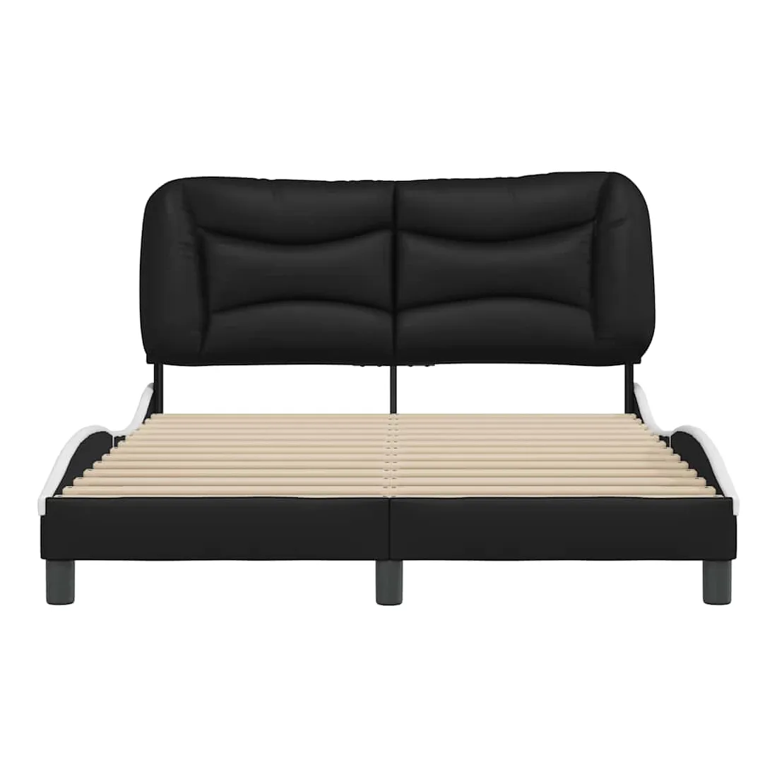 Obtenez une meilleure nuit de sommeil reposante grâce à ce cadre de lit avec tête de lit ! Il est un supplément accueillant à toute chambre à coucher. Similicuir durable : le similicuir de qualité supérieure est un matériau très durable. Il est résistant aux taches, ce qui le rend facile à nettoyer avec un chiffon humide. La surface lisse donne également un aspect luxueux et la beauté du cuir véritable.Lattes de contreplaqué : les lattes de contreplaqué assurent une bonne répartition du poids, garantissant que le matelas reste en place à chaque torsion de votre corps pendant le sommeil.Excellent soutien : l'oreiller de tête de lit est rembourré avec de la fibre de polypropylène pour un confort ultra doux et optimal vous offre un excellent soutien du dos lorsque vous êtes assis dans votre lit pour lire ou regarder la télévision.Design latéral ondulé : l’aspect ondulé du cadre de lit est élégant et sophistiqué, ajoutant une touche moderne et élégante à votre décor, ce qui en fait le point central de votre chambre à coucher. Bon à savoir :Un matelas n'est pas inclus avec ce lit. Nous offrons une sélection variée de matelas. Vous pouvez consulter notre boutique pour trouver un matelas assorti.