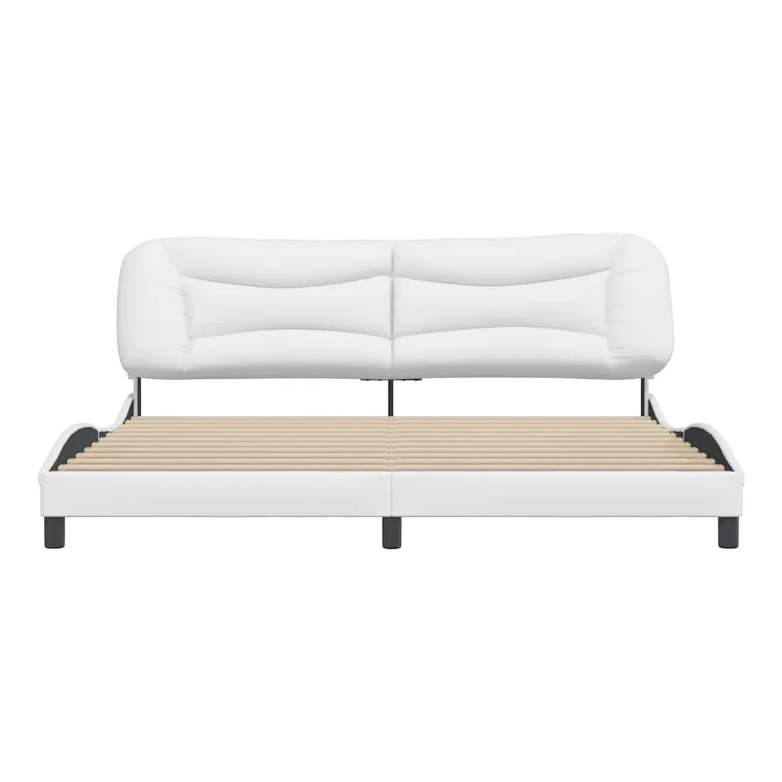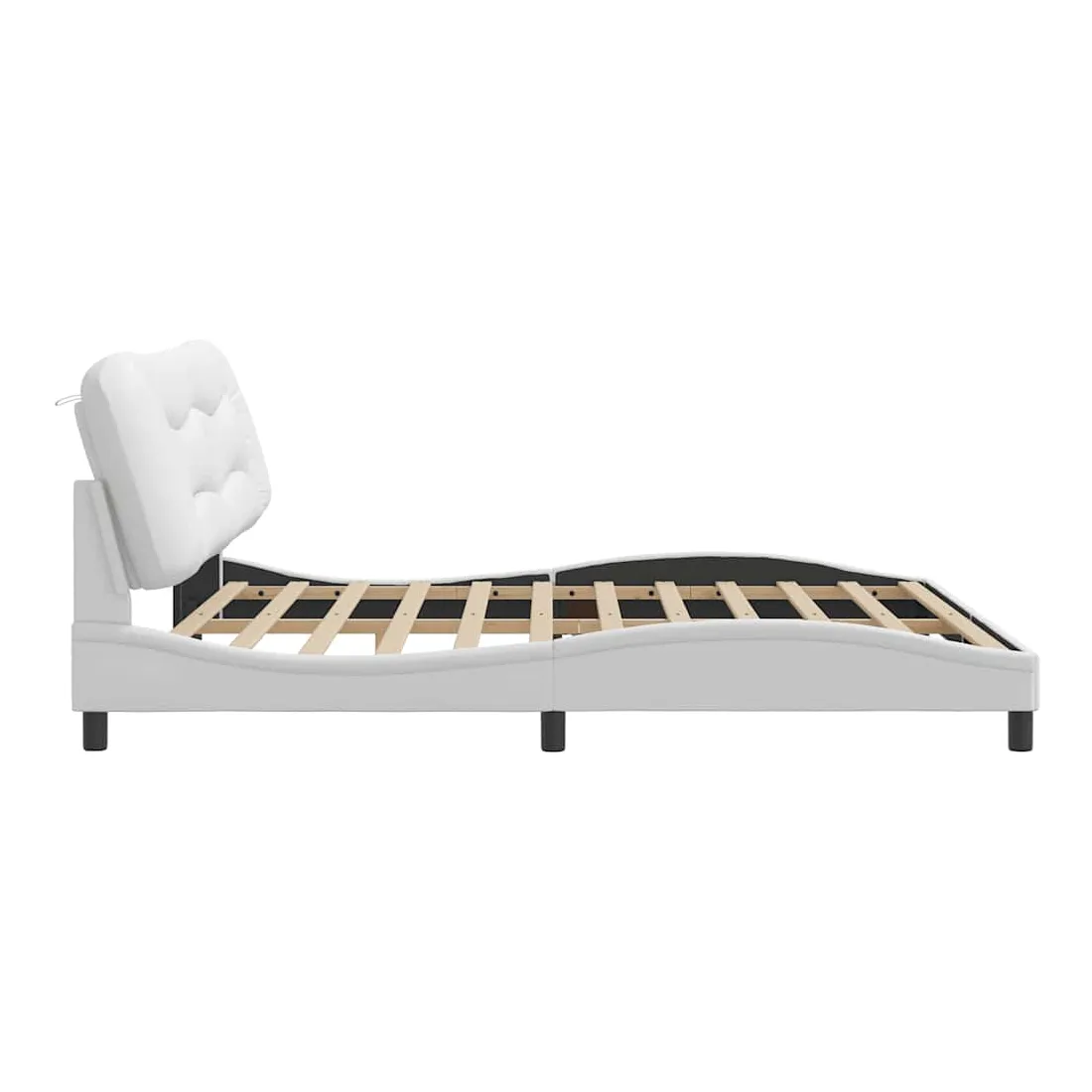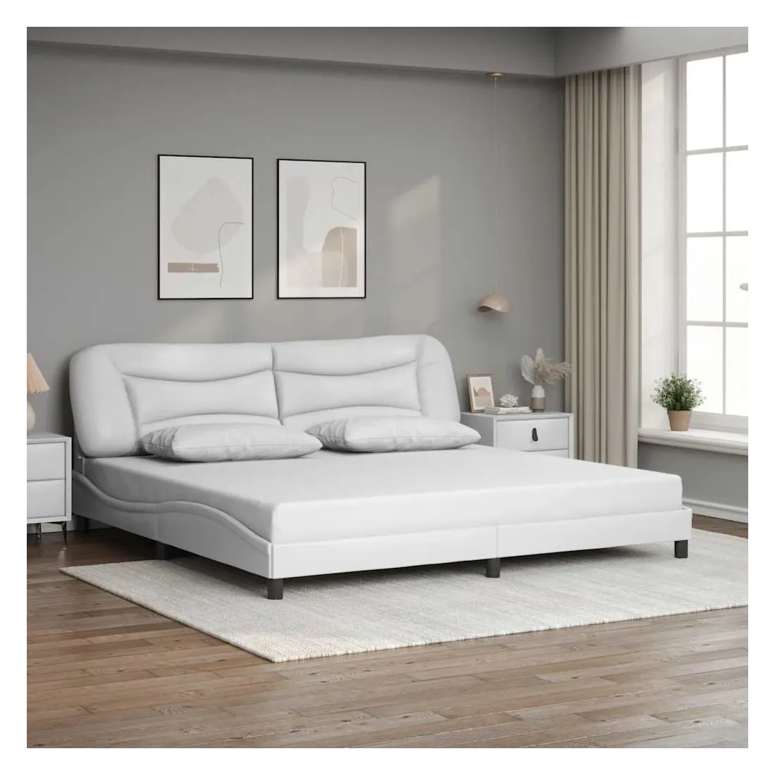 Obtenez une meilleure nuit de sommeil reposante grâce à ce cadre de lit avec tête de lit ! Il est un supplément accueillant à toute chambre à coucher. Similicuir durable : le similicuir de qualité supérieure est un matériau très durable. Il est résistant aux taches, ce qui le rend facile à nettoyer avec un chiffon humide. La surface lisse donne également un aspect luxueux et la beauté du cuir véritable.Lattes de contreplaqué : les lattes de contreplaqué assurent une bonne répartition du poids, garantissant que le matelas reste en place à chaque torsion de votre corps pendant le sommeil.Excellent soutien : l'oreiller de tête de lit est rembourré avec de la fibre de polypropylène pour un confort ultra doux et optimal vous offre un excellent soutien du dos lorsque vous êtes assis dans votre lit pour lire ou regarder la télévision.Design latéral ondulé : l’aspect ondulé du cadre de lit est élégant et sophistiqué, ajoutant une touche moderne et élégante à votre décor, ce qui en fait le point central de votre chambre à coucher. Bon à savoir :Un matelas n'est pas inclus avec ce lit. Nous offrons une sélection variée de matelas. Vous pouvez consulter notre boutique pour trouver un matelas assorti.