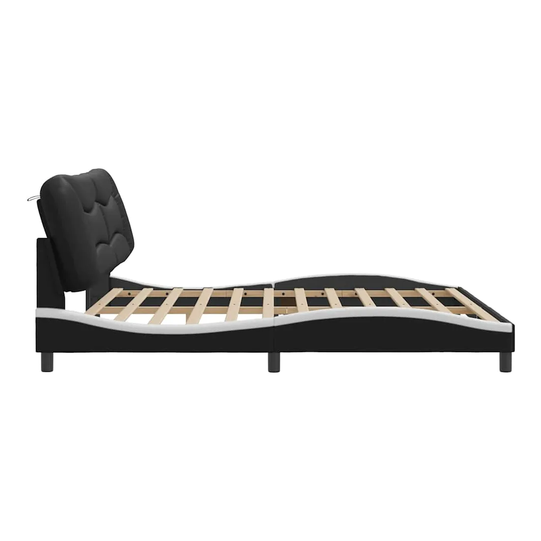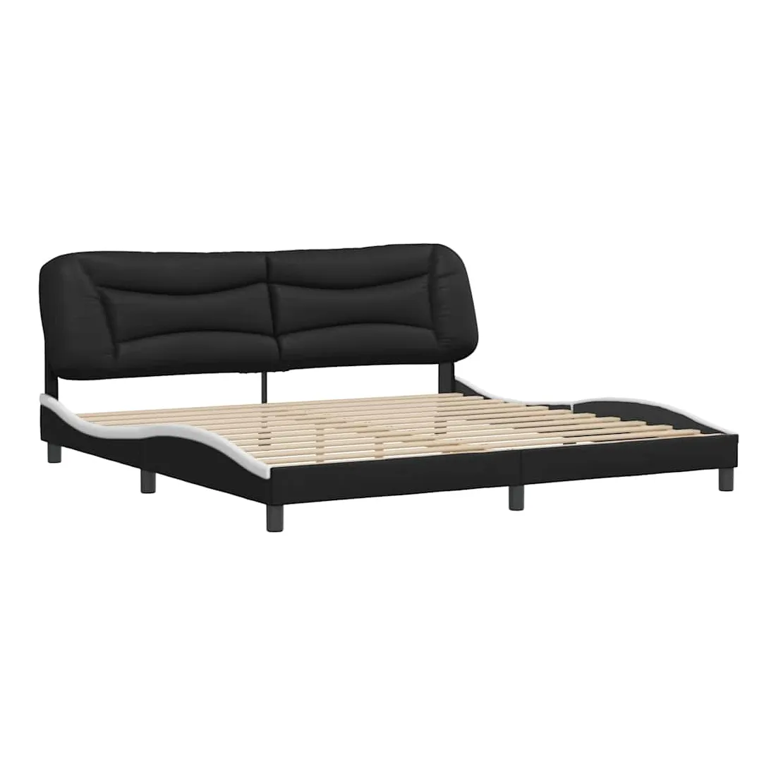 Obtenez une meilleure nuit de sommeil reposante grâce à ce cadre de lit avec tête de lit ! Il est un supplément accueillant à toute chambre à coucher. Similicuir durable : le similicuir de qualité supérieure est un matériau très durable. Il est résistant aux taches, ce qui le rend facile à nettoyer avec un chiffon humide. La surface lisse donne également un aspect luxueux et la beauté du cuir véritable.Lattes de contreplaqué : les lattes de contreplaqué assurent une bonne répartition du poids, garantissant que le matelas reste en place à chaque torsion de votre corps pendant le sommeil.Excellent soutien : l'oreiller de tête de lit est rembourré avec de la fibre de polypropylène pour un confort ultra doux et optimal vous offre un excellent soutien du dos lorsque vous êtes assis dans votre lit pour lire ou regarder la télévision.Design latéral ondulé : l’aspect ondulé du cadre de lit est élégant et sophistiqué, ajoutant une touche moderne et élégante à votre décor, ce qui en fait le point central de votre chambre à coucher. Bon à savoir :Un matelas n'est pas inclus avec ce lit. Nous offrons une sélection variée de matelas. Vous pouvez consulter notre boutique pour trouver un matelas assorti.