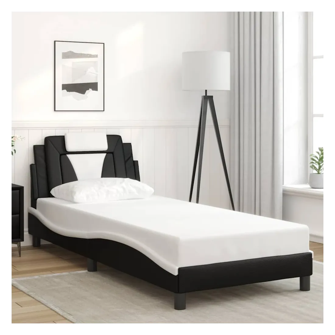 Obtenez une meilleure nuit de sommeil reposante grâce à ce cadre de lit avec tête de lit ! Il est un supplément accueillant à toute chambre à coucher. Similicuir durable : le similicuir de qualité supérieure est un matériau très durable. Il est résistant aux taches, ce qui le rend facile à nettoyer avec un chiffon humide. La surface lisse donne également un aspect luxueux et la beauté du cuir véritable.Lattes de contreplaqué : les lattes de contreplaqué assurent une bonne répartition du poids, garantissant que le matelas reste en place à chaque torsion de votre corps pendant le sommeil.Excellent soutien : l'oreiller de tête de lit est rembourré avec de la mousse pour un confort ultra doux et optimal vous offre un excellent soutien du dos lorsque vous êtes assis dans votre lit pour lire ou regarder la télévision.Design latéral ondulé : l’aspect ondulé du cadre de lit est élégant et sophistiqué, ajoutant une touche moderne et élégante à votre décor, ce qui en fait le point central de votre chambre à coucher. Bon à savoir :Un matelas n'est pas inclus avec ce lit. Nous offrons une sélection variée de matelas. Vous pouvez consulter notre boutique pour trouver un matelas assorti.