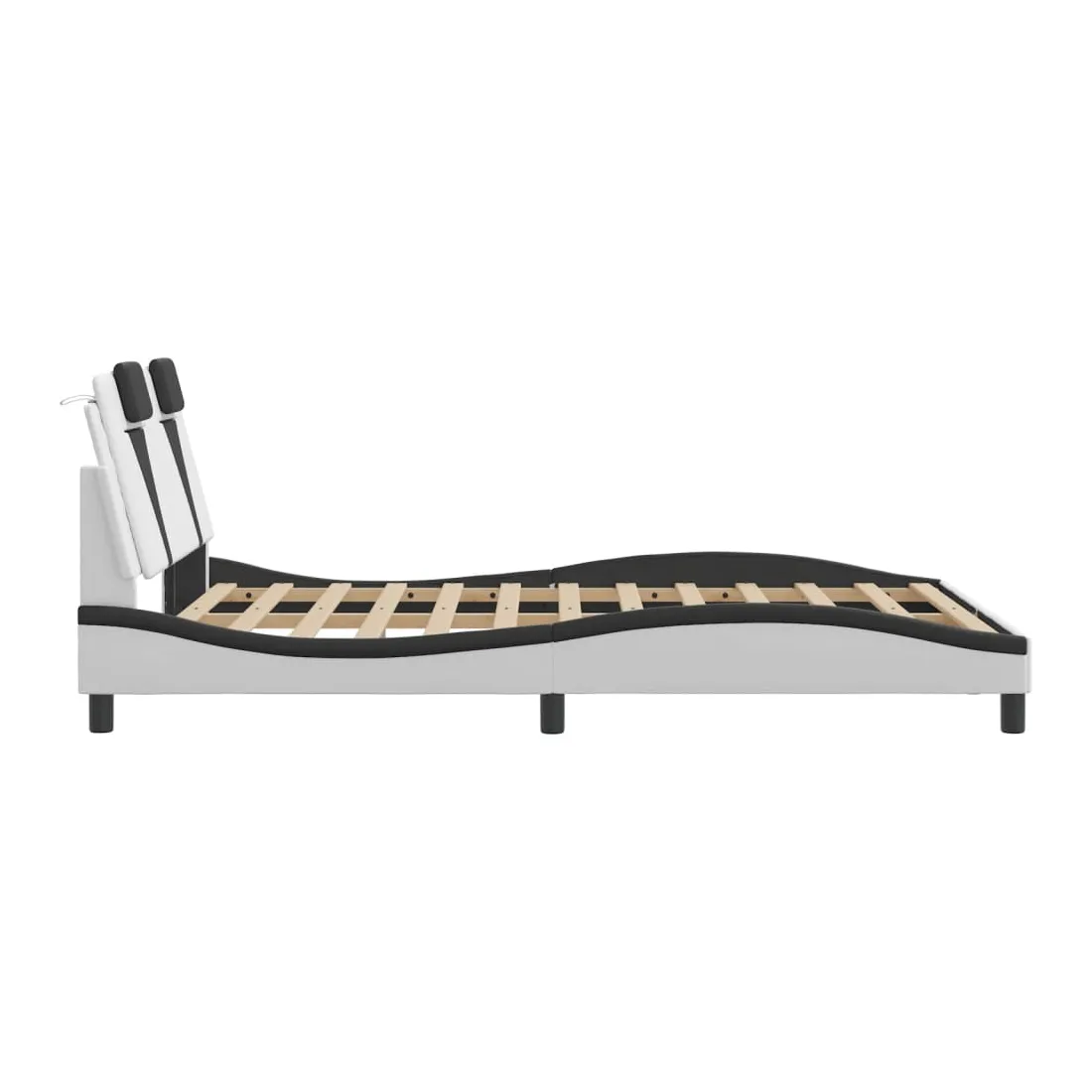 Obtenez une meilleure nuit de sommeil reposante grâce à ce cadre de lit avec tête de lit ! Il est un supplément accueillant à toute chambre à coucher. Similicuir durable : le similicuir de qualité supérieure est un matériau très durable. Il est résistant aux taches, ce qui le rend facile à nettoyer avec un chiffon humide. La surface lisse donne également un aspect luxueux et la beauté du cuir véritable.Lattes de contreplaqué : les lattes de contreplaqué assurent une bonne répartition du poids, garantissant que le matelas reste en place à chaque torsion de votre corps pendant le sommeil.Excellent soutien : l'oreiller de tête de lit est rembourré avec de la mousse pour un confort ultra doux et optimal vous offre un excellent soutien du dos lorsque vous êtes assis dans votre lit pour lire ou regarder la télévision.Design latéral ondulé : l’aspect ondulé du cadre de lit est élégant et sophistiqué, ajoutant une touche moderne et élégante à votre décor, ce qui en fait le point central de votre chambre à coucher. Bon à savoir :Un matelas n'est pas inclus avec ce lit. Nous offrons une sélection variée de matelas. Vous pouvez consulter notre boutique pour trouver un matelas assorti.