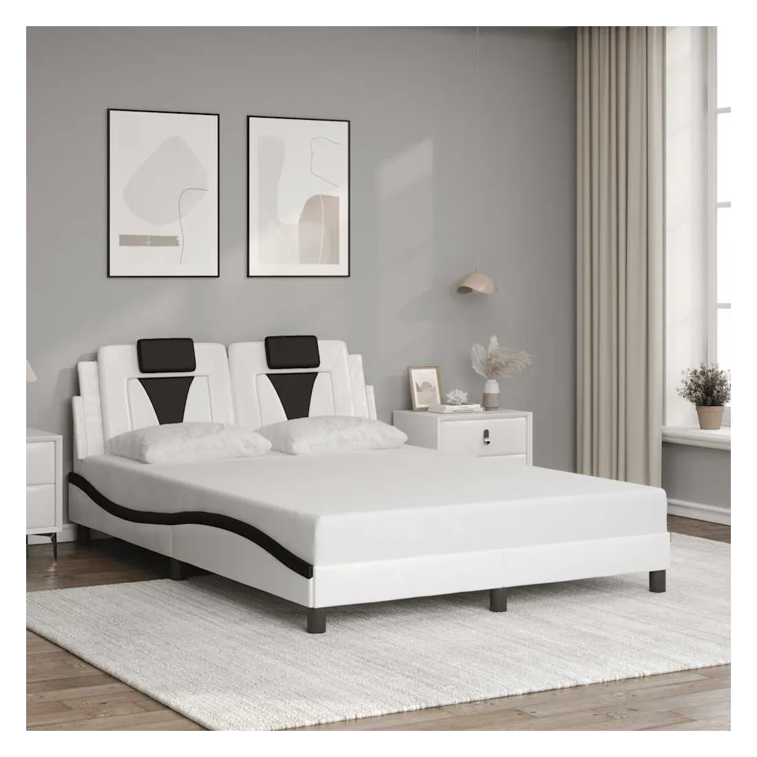 Obtenez une meilleure nuit de sommeil reposante grâce à ce cadre de lit avec tête de lit ! Il est un supplément accueillant à toute chambre à coucher. Similicuir durable : le similicuir de qualité supérieure est un matériau très durable. Il est résistant aux taches, ce qui le rend facile à nettoyer avec un chiffon humide. La surface lisse donne également un aspect luxueux et la beauté du cuir véritable.Lattes de contreplaqué : les lattes de contreplaqué assurent une bonne répartition du poids, garantissant que le matelas reste en place à chaque torsion de votre corps pendant le sommeil.Excellent soutien : l'oreiller de tête de lit est rembourré avec de la mousse pour un confort ultra doux et optimal vous offre un excellent soutien du dos lorsque vous êtes assis dans votre lit pour lire ou regarder la télévision.Design latéral ondulé : l’aspect ondulé du cadre de lit est élégant et sophistiqué, ajoutant une touche moderne et élégante à votre décor, ce qui en fait le point central de votre chambre à coucher. Bon à savoir :Un matelas n'est pas inclus avec ce lit. Nous offrons une sélection variée de matelas. Vous pouvez consulter notre boutique pour trouver un matelas assorti.