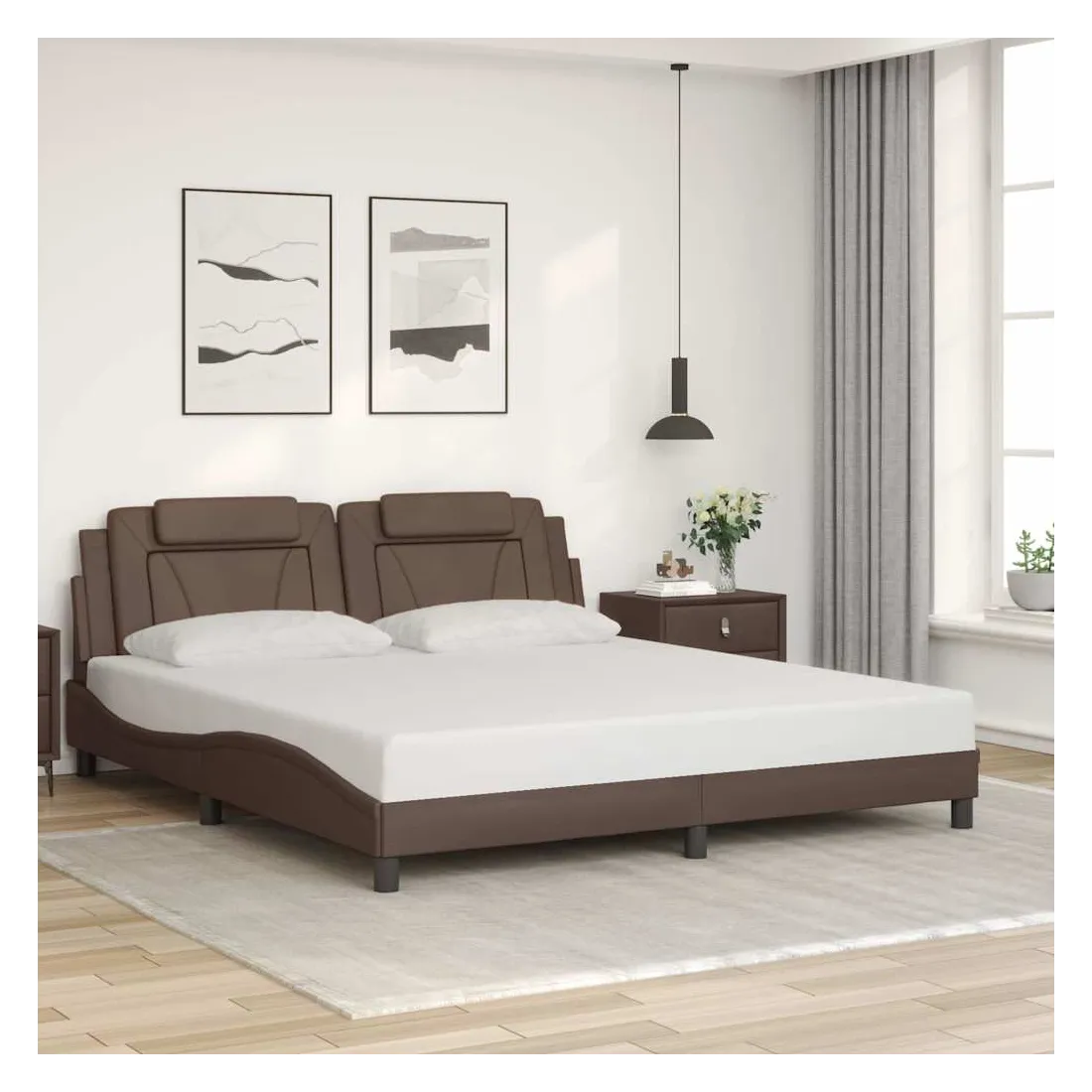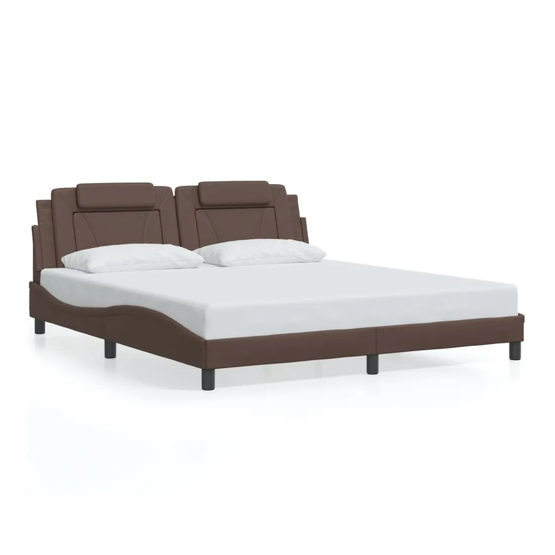 Obtenez une meilleure nuit de sommeil reposante grâce à ce cadre de lit avec tête de lit ! Il est un supplément accueillant à toute chambre à coucher. Similicuir durable : le similicuir de qualité supérieure est un matériau très durable. Il est résistant aux taches, ce qui le rend facile à nettoyer avec un chiffon humide. La surface lisse donne également un aspect luxueux et la beauté du cuir véritable.Lattes de contreplaqué : les lattes de contreplaqué assurent une bonne répartition du poids, garantissant que le matelas reste en place à chaque torsion de votre corps pendant le sommeil.Excellent soutien : l'oreiller de tête de lit est rembourré avec de la mousse pour un confort ultra doux et optimal vous offre un excellent soutien du dos lorsque vous êtes assis dans votre lit pour lire ou regarder la télévision.Design latéral ondulé : l’aspect ondulé du cadre de lit est élégant et sophistiqué, ajoutant une touche moderne et élégante à votre décor, ce qui en fait le point central de votre chambre à coucher. Bon à savoir :Un matelas n'est pas inclus avec ce lit. Nous offrons une sélection variée de matelas. Vous pouvez consulter notre boutique pour trouver un matelas assorti.