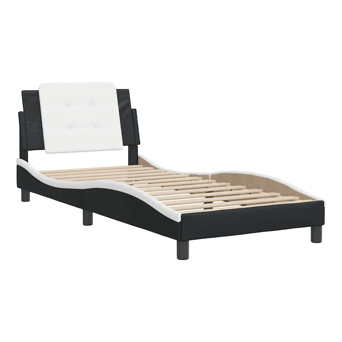Obtenez une meilleure nuit de sommeil reposante grâce à ce cadre de lit avec tête de lit ! Il est un supplément accueillant à toute chambre à coucher. Similicuir durable : le similicuir de qualité supérieure est un matériau très durable. Il est résistant aux taches, ce qui le rend facile à nettoyer avec un chiffon humide. La surface lisse donne également un aspect luxueux et la beauté du cuir véritable.Lattes de contreplaqué : les lattes de contreplaqué assurent une bonne répartition du poids, garantissant que le matelas reste en place à chaque torsion de votre corps pendant le sommeil.Excellent soutien : l'oreiller de tête de lit est rembourré avec de la mousse pour un confort ultra doux et optimal vous offre un excellent soutien du dos lorsque vous êtes assis dans votre lit pour lire ou regarder la télévision.Design pratique : le coussin de tête de lit est doté d'une fermeture éclair pour une installation facile.Design latéral ondulé : l’aspect ondulé du cadre de lit est élégant et sophistiqué, ajoutant une touche moderne et élégante à votre décor, ce qui en fait le point central de votre chambre à coucher. Bon à savoir :Un matelas n'est pas inclus avec ce lit. Nous offrons une sélection variée de matelas. Vous pouvez consulter notre boutique pour trouver un matelas assorti.