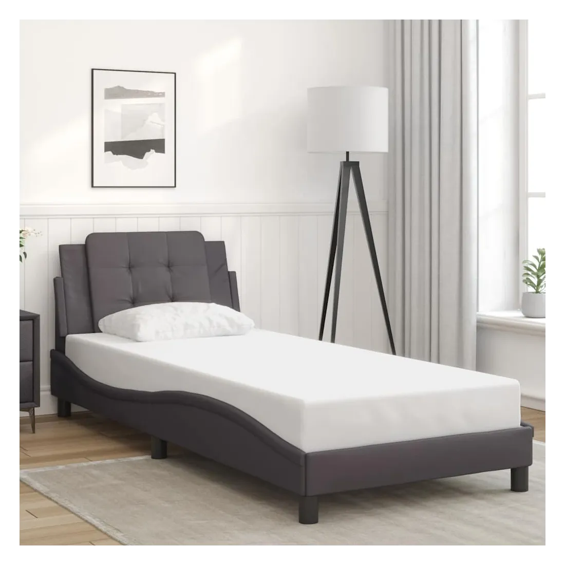 Obtenez une meilleure nuit de sommeil reposante grâce à ce cadre de lit avec tête de lit ! Il est un supplément accueillant à toute chambre à coucher. Similicuir durable : le similicuir de qualité supérieure est un matériau très durable. Il est résistant aux taches, ce qui le rend facile à nettoyer avec un chiffon humide. La surface lisse donne également un aspect luxueux et la beauté du cuir véritable.Lattes de contreplaqué : les lattes de contreplaqué assurent une bonne répartition du poids, garantissant que le matelas reste en place à chaque torsion de votre corps pendant le sommeil.Excellent soutien : l'oreiller de tête de lit est rembourré avec de la mousse pour un confort ultra doux et optimal vous offre un excellent soutien du dos lorsque vous êtes assis dans votre lit pour lire ou regarder la télévision.Design pratique : le coussin de tête de lit est doté d'une fermeture éclair pour une installation facile.Design latéral ondulé : l’aspect ondulé du cadre de lit est élégant et sophistiqué, ajoutant une touche moderne et élégante à votre décor, ce qui en fait le point central de votre chambre à coucher. Bon à savoir :Un matelas n'est pas inclus avec ce lit. Nous offrons une sélection variée de matelas. Vous pouvez consulter notre boutique pour trouver un matelas assorti.