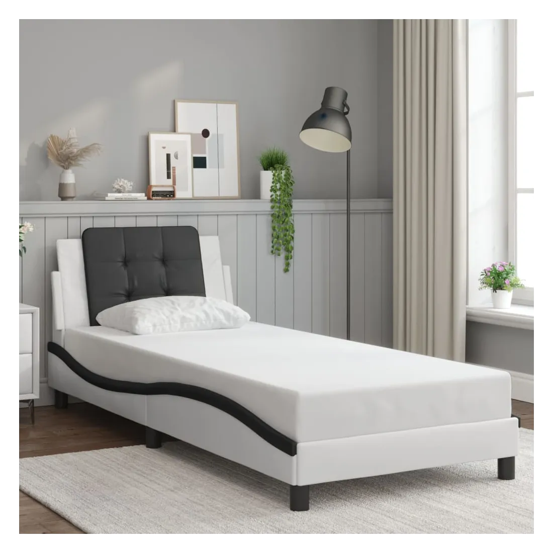 Cadre de lit sans matelas Zadar blanc et noir 90x200 cm similicuir