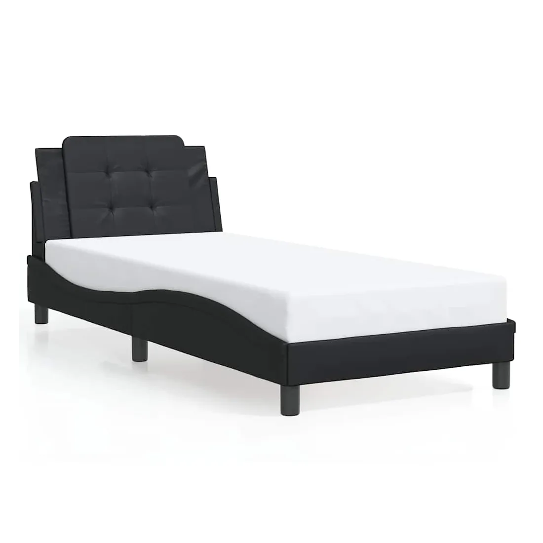 Obtenez une meilleure nuit de sommeil reposante grâce à ce cadre de lit avec tête de lit ! Il est un supplément accueillant à toute chambre à coucher. Similicuir durable : le similicuir de qualité supérieure est un matériau très durable. Il est résistant aux taches, ce qui le rend facile à nettoyer avec un chiffon humide. La surface lisse donne également un aspect luxueux et la beauté du cuir véritable.Lattes de contreplaqué : les lattes de contreplaqué assurent une bonne répartition du poids, garantissant que le matelas reste en place à chaque torsion de votre corps pendant le sommeil.Excellent soutien : l'oreiller de tête de lit est rembourré avec de la mousse pour un confort ultra doux et optimal vous offre un excellent soutien du dos lorsque vous êtes assis dans votre lit pour lire ou regarder la télévision.Design pratique : le coussin de tête de lit est doté d'une fermeture éclair pour une installation facile.Design latéral ondulé : l’aspect ondulé du cadre de lit est élégant et sophistiqué, ajoutant une touche moderne et élégante à votre décor, ce qui en fait le point central de votre chambre à coucher. Bon à savoir :Un matelas n'est pas inclus avec ce lit. Nous offrons une sélection variée de matelas. Vous pouvez consulter notre boutique pour trouver un matelas assorti.