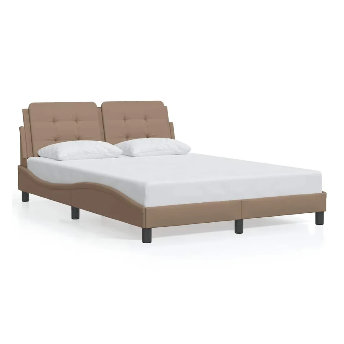 Obtenez une meilleure nuit de sommeil reposante grâce à ce cadre de lit avec tête de lit ! Il est un supplément accueillant à toute chambre à coucher. Similicuir durable : le similicuir de qualité supérieure est un matériau très durable. Il est résistant aux taches, ce qui le rend facile à nettoyer avec un chiffon humide. La surface lisse donne également un aspect luxueux et la beauté du cuir véritable.Lattes de contreplaqué : les lattes de contreplaqué assurent une bonne répartition du poids, garantissant que le matelas reste en place à chaque torsion de votre corps pendant le sommeil.Excellent soutien : l'oreiller de tête de lit est rembourré avec de la mousse pour un confort ultra doux et optimal vous offre un excellent soutien du dos lorsque vous êtes assis dans votre lit pour lire ou regarder la télévision.Design pratique : le coussin de tête de lit est doté d'une fermeture éclair pour une installation facile.Design latéral ondulé : l’aspect ondulé du cadre de lit est élégant et sophistiqué, ajoutant une touche moderne et élégante à votre décor, ce qui en fait le point central de votre chambre à coucher. Bon à savoir :Un matelas n'est pas inclus avec ce lit. Nous offrons une sélection variée de matelas. Vous pouvez consulter notre boutique pour trouver un matelas assorti.