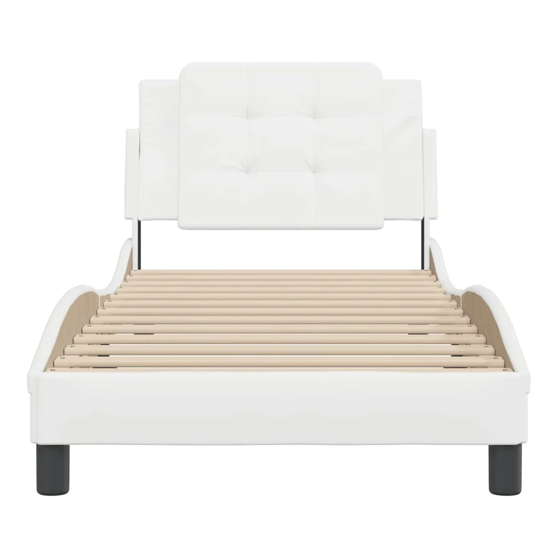 Obtenez une meilleure nuit de sommeil reposante grâce à ce cadre de lit avec tête de lit ! Il est un supplément accueillant à toute chambre à coucher. Similicuir durable : le similicuir de qualité supérieure est un matériau très durable. Il est résistant aux taches, ce qui le rend facile à nettoyer avec un chiffon humide. La surface lisse donne également un aspect luxueux et la beauté du cuir véritable.Lattes de contreplaqué : les lattes de contreplaqué assurent une bonne répartition du poids, garantissant que le matelas reste en place à chaque torsion de votre corps pendant le sommeil.Excellent soutien : l'oreiller de tête de lit est rembourré avec de la mousse pour un confort ultra doux et optimal vous offre un excellent soutien du dos lorsque vous êtes assis dans votre lit pour lire ou regarder la télévision.Design pratique : le coussin de tête de lit est doté d'une fermeture éclair pour une installation facile.Design latéral ondulé : l’aspect ondulé du cadre de lit est élégant et sophistiqué, ajoutant une touche moderne et élégante à votre décor, ce qui en fait le point central de votre chambre à coucher. Bon à savoir :Un matelas n'est pas inclus avec ce lit. Nous offrons une sélection variée de matelas. Vous pouvez consulter notre boutique pour trouver un matelas assorti.