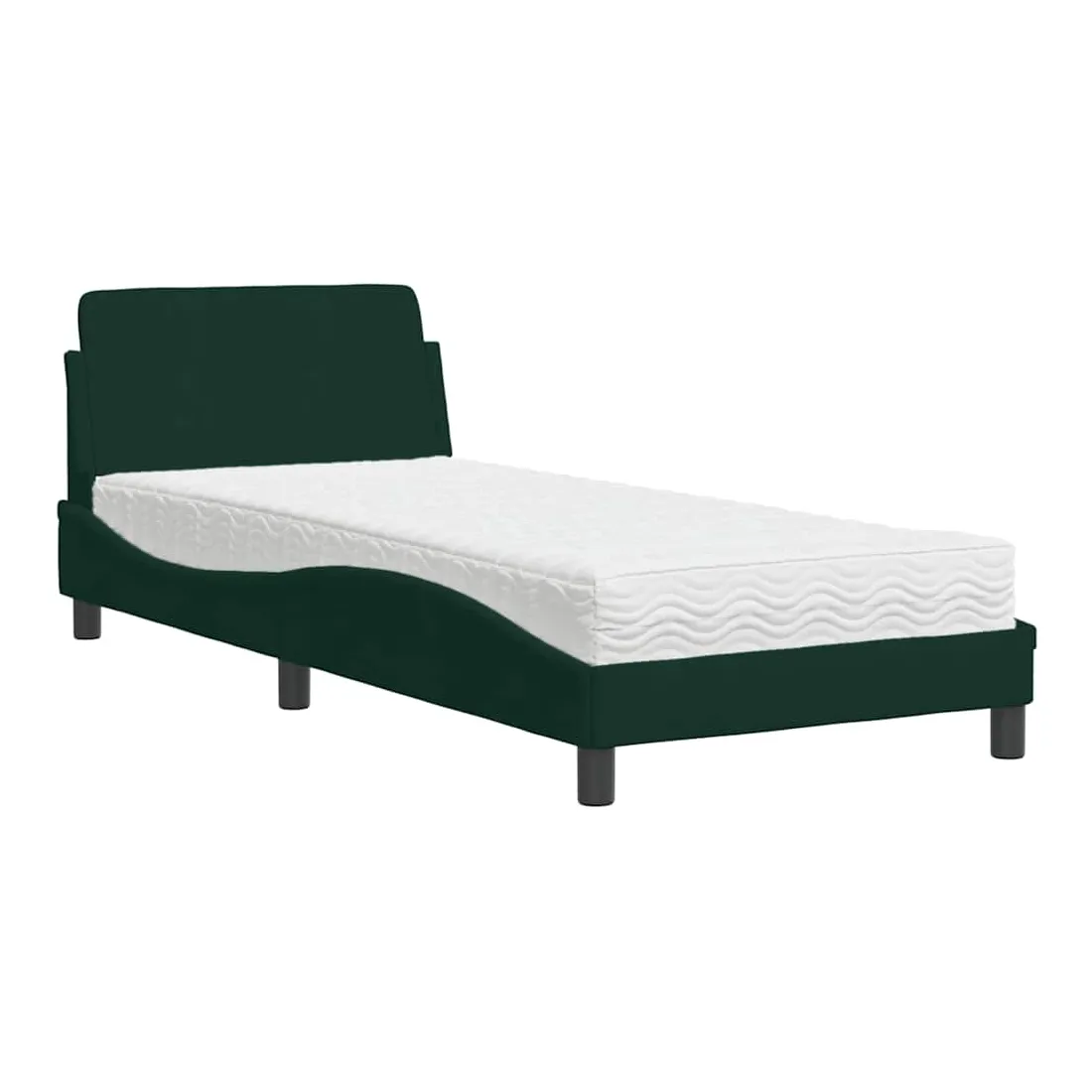 Obtenez une meilleure nuit de sommeil reposante grâce à ce lit avec matelas ! Il est un supplément accueillant à toute chambre à coucher. Velours doux : le velours est un tissu doux et confortable, agréable au toucher.Lattes de contreplaqué : les lattes de contreplaqué assurent une bonne répartition du poids, garantissant que le matelas reste en place à chaque torsion de votre corps pendant le sommeil.Excellent soutien : la tête de lit vous offre un excellent soutien du dos lorsque vous êtes assis dans votre lit pour lire ou regarder la télévision.Matelas en mousse : ce matelas de lit en tissu à 3 couches est rempli de mousse PU 22D pour un confort optimal. Il contribue à soulager la fatigue et à favoriser la circulation sanguine, vous offrant ainsi une relaxation complète et une bonne qualité de sommeil. En outre, le matelas est disponible en dureté H2 et H3, de sorte que vous pouvez simplement tourner le matelas pour choisir la dureté qui vous convient le mieux.Design latéral ondulé : l’aspect ondulé du cadre de lit est élégant et sophistiqué, ajoutant une touche moderne et élégante à votre décor, ce qui en fait le point central de votre chambre à coucher.