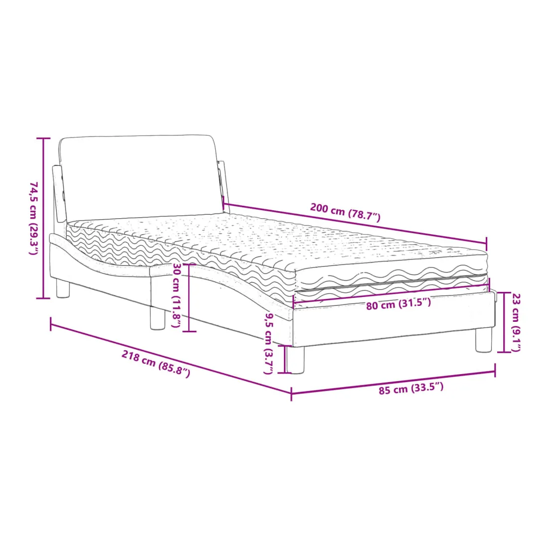 - Dimensions totales : 218 x 85 x 74,5 cm (L x l x H)