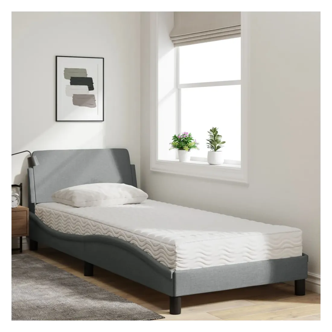 Obtenez une meilleure nuit de sommeil reposante grâce à ce lit avec matelas ! Il est un supplément accueillant à toute chambre à coucher. Tissu durable : le tissu présente un aspect simple et épuré, et il est respirant et durable.Lattes de contreplaqué : les lattes de contreplaqué assurent une bonne répartition du poids, garantissant que le matelas reste en place à chaque torsion de votre corps pendant le sommeil.Excellent soutien : la tête de lit vous offre un excellent soutien du dos lorsque vous êtes assis dans votre lit pour lire ou regarder la télévision.Matelas en mousse : ce matelas de lit en tissu à 3 couches est rempli de mousse PU 22D pour un confort optimal. Il contribue à soulager la fatigue et à favoriser la circulation sanguine, vous offrant ainsi une relaxation complète et une bonne qualité de sommeil. En outre, le matelas est disponible en dureté H2 et H3, de sorte que vous pouvez simplement tourner le matelas pour choisir la dureté qui vous convient le mieux.Design latéral ondulé : l’aspect ondulé du cadre de lit est élégant et sophistiqué, ajoutant une touche moderne et élégante à votre décor, ce qui en fait le point central de votre chambre à coucher.