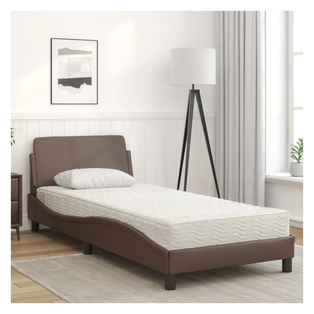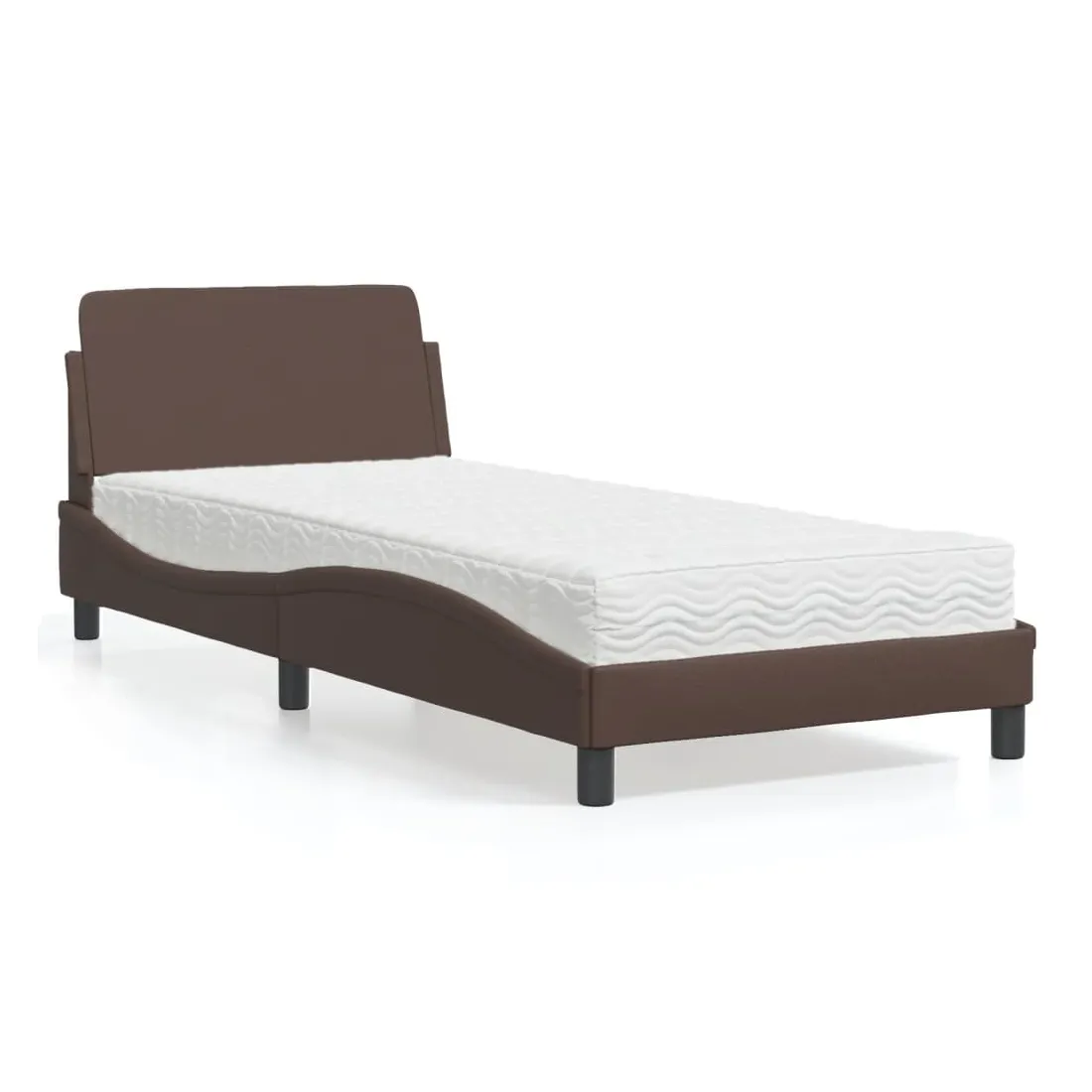 Obtenez une meilleure nuit de sommeil reposante grâce à ce lit avec matelas ! Il est un supplément accueillant à toute chambre à coucher. Similicuir durable : le similicuir de qualité supérieure est un matériau très durable. Il est résistant aux taches, ce qui le rend facile à nettoyer avec un chiffon humide. La surface lisse donne également un aspect luxueux et la beauté du cuir véritable.Lattes de contreplaqué : les lattes de contreplaqué assurent une bonne répartition du poids, garantissant que le matelas reste en place à chaque torsion de votre corps pendant le sommeil.Excellent soutien : la tête de lit vous offre un excellent soutien du dos lorsque vous êtes assis dans votre lit pour lire ou regarder la télévision.Matelas en mousse : ce matelas de lit en tissu à 3 couches est rempli de mousse PU 22D pour un confort optimal. Il contribue à soulager la fatigue et à favoriser la circulation sanguine, vous offrant ainsi une relaxation complète et une bonne qualité de sommeil. En outre, le matelas est disponible en dureté H2 et H3, de sorte que vous pouvez simplement tourner le matelas pour choisir la dureté qui vous convient le mieux.Design latéral ondulé : l’aspect ondulé du cadre de lit est élégant et sophistiqué, ajoutant une touche moderne et élégante à votre décor, ce qui en fait le point central de votre chambre à coucher.