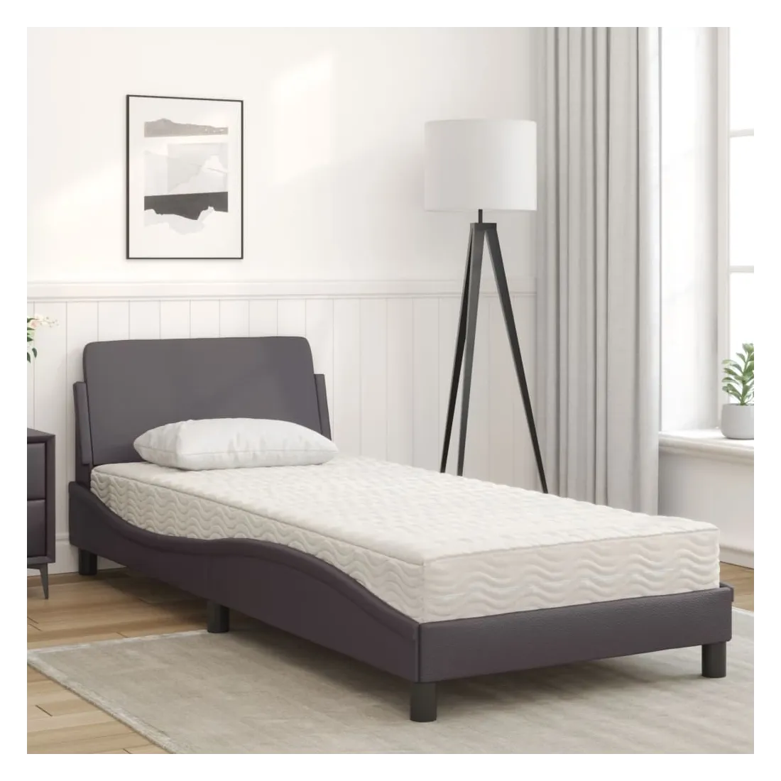 Obtenez une meilleure nuit de sommeil reposante grâce à ce lit avec matelas ! Il est un supplément accueillant à toute chambre à coucher. Similicuir durable : le similicuir de qualité supérieure est un matériau très durable. Il est résistant aux taches, ce qui le rend facile à nettoyer avec un chiffon humide. La surface lisse donne également un aspect luxueux et la beauté du cuir véritable.Lattes de contreplaqué : les lattes de contreplaqué assurent une bonne répartition du poids, garantissant que le matelas reste en place à chaque torsion de votre corps pendant le sommeil.Excellent soutien : la tête de lit vous offre un excellent soutien du dos lorsque vous êtes assis dans votre lit pour lire ou regarder la télévision.Matelas en mousse : ce matelas de lit en tissu à 3 couches est rempli de mousse PU 22D pour un confort optimal. Il contribue à soulager la fatigue et à favoriser la circulation sanguine, vous offrant ainsi une relaxation complète et une bonne qualité de sommeil. En outre, le matelas est disponible en dureté H2 et H3, de sorte que vous pouvez simplement tourner le matelas pour choisir la dureté qui vous convient le mieux.Design latéral ondulé : l’aspect ondulé du cadre de lit est élégant et sophistiqué, ajoutant une touche moderne et élégante à votre décor, ce qui en fait le point central de votre chambre à coucher.