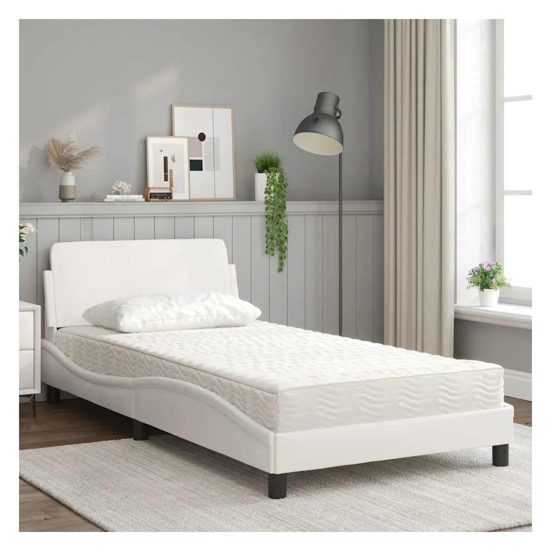 Obtenez une meilleure nuit de sommeil reposante grâce à ce lit avec matelas ! Il est un supplément accueillant à toute chambre à coucher. Similicuir durable : le similicuir de qualité supérieure est un matériau très durable. Il est résistant aux taches, ce qui le rend facile à nettoyer avec un chiffon humide. La surface lisse donne également un aspect luxueux et la beauté du cuir véritable.Lattes de contreplaqué : les lattes de contreplaqué assurent une bonne répartition du poids, garantissant que le matelas reste en place à chaque torsion de votre corps pendant le sommeil.Excellent soutien : la tête de lit vous offre un excellent soutien du dos lorsque vous êtes assis dans votre lit pour lire ou regarder la télévision.Matelas en mousse : ce matelas de lit en tissu à 3 couches est rempli de mousse PU 22D pour un confort optimal. Il contribue à soulager la fatigue et à favoriser la circulation sanguine, vous offrant ainsi une relaxation complète et une bonne qualité de sommeil. En outre, le matelas est disponible en dureté H2 et H3, de sorte que vous pouvez simplement tourner le matelas pour choisir la dureté qui vous convient le mieux.Design latéral ondulé : l’aspect ondulé du cadre de lit est élégant et sophistiqué, ajoutant une touche moderne et élégante à votre décor, ce qui en fait le point central de votre chambre à coucher.