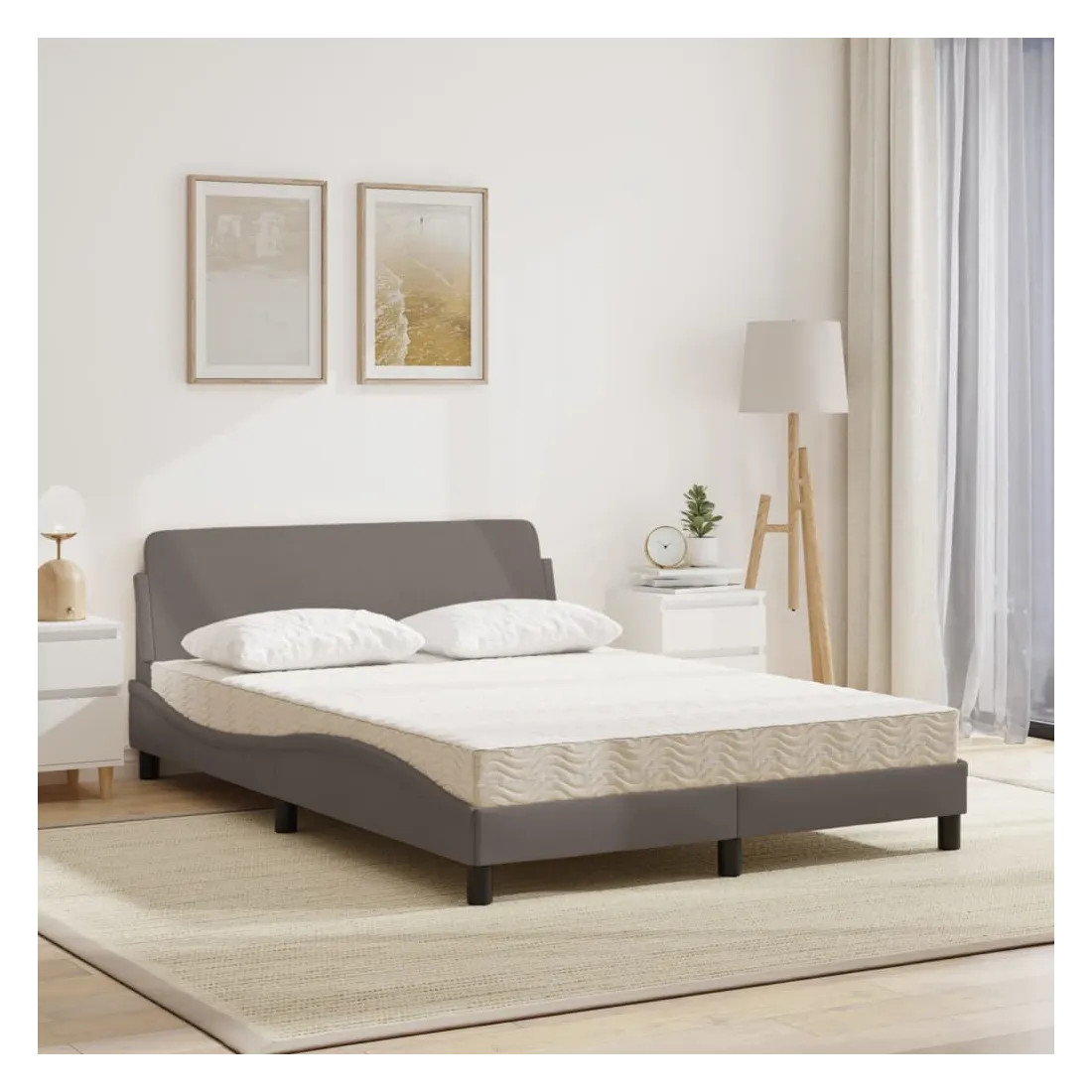 Obtenez une meilleure nuit de sommeil reposante grâce à ce lit avec matelas ! Il est un supplément accueillant à toute chambre à coucher. Tissu durable : le tissu présente un aspect simple et épuré, et il est respirant et durable.Lattes de contreplaqué : les lattes de contreplaqué assurent une bonne répartition du poids, garantissant que le matelas reste en place à chaque torsion de votre corps pendant le sommeil.Excellent soutien : la tête de lit vous offre un excellent soutien du dos lorsque vous êtes assis dans votre lit pour lire ou regarder la télévision.Matelas en mousse : ce matelas de lit en tissu à 3 couches est rempli de mousse PU 22D pour un confort optimal. Il contribue à soulager la fatigue et à favoriser la circulation sanguine, vous offrant ainsi une relaxation complète et une bonne qualité de sommeil. En outre, le matelas est disponible en dureté H2 et H3, de sorte que vous pouvez simplement tourner le matelas pour choisir la dureté qui vous convient le mieux.Design latéral ondulé : l’aspect ondulé du cadre de lit est élégant et sophistiqué, ajoutant une touche moderne et élégante à votre décor, ce qui en fait le point central de votre chambre à coucher.