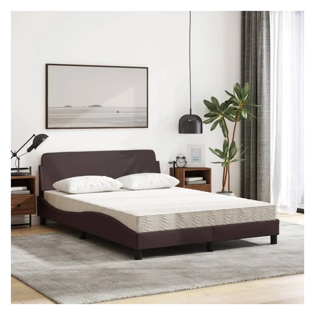 Obtenez une meilleure nuit de sommeil reposante grâce à ce lit avec matelas ! Il est un supplément accueillant à toute chambre à coucher. Tissu durable : le tissu présente un aspect simple et épuré, et il est respirant et durable.Lattes de contreplaqué : les lattes de contreplaqué assurent une bonne répartition du poids, garantissant que le matelas reste en place à chaque torsion de votre corps pendant le sommeil.Excellent soutien : la tête de lit vous offre un excellent soutien du dos lorsque vous êtes assis dans votre lit pour lire ou regarder la télévision.Matelas en mousse : ce matelas de lit en tissu à 3 couches est rempli de mousse PU 22D pour un confort optimal. Il contribue à soulager la fatigue et à favoriser la circulation sanguine, vous offrant ainsi une relaxation complète et une bonne qualité de sommeil. En outre, le matelas est disponible en dureté H2 et H3, de sorte que vous pouvez simplement tourner le matelas pour choisir la dureté qui vous convient le mieux.Design latéral ondulé : l’aspect ondulé du cadre de lit est élégant et sophistiqué, ajoutant une touche moderne et élégante à votre décor, ce qui en fait le point central de votre chambre à coucher.