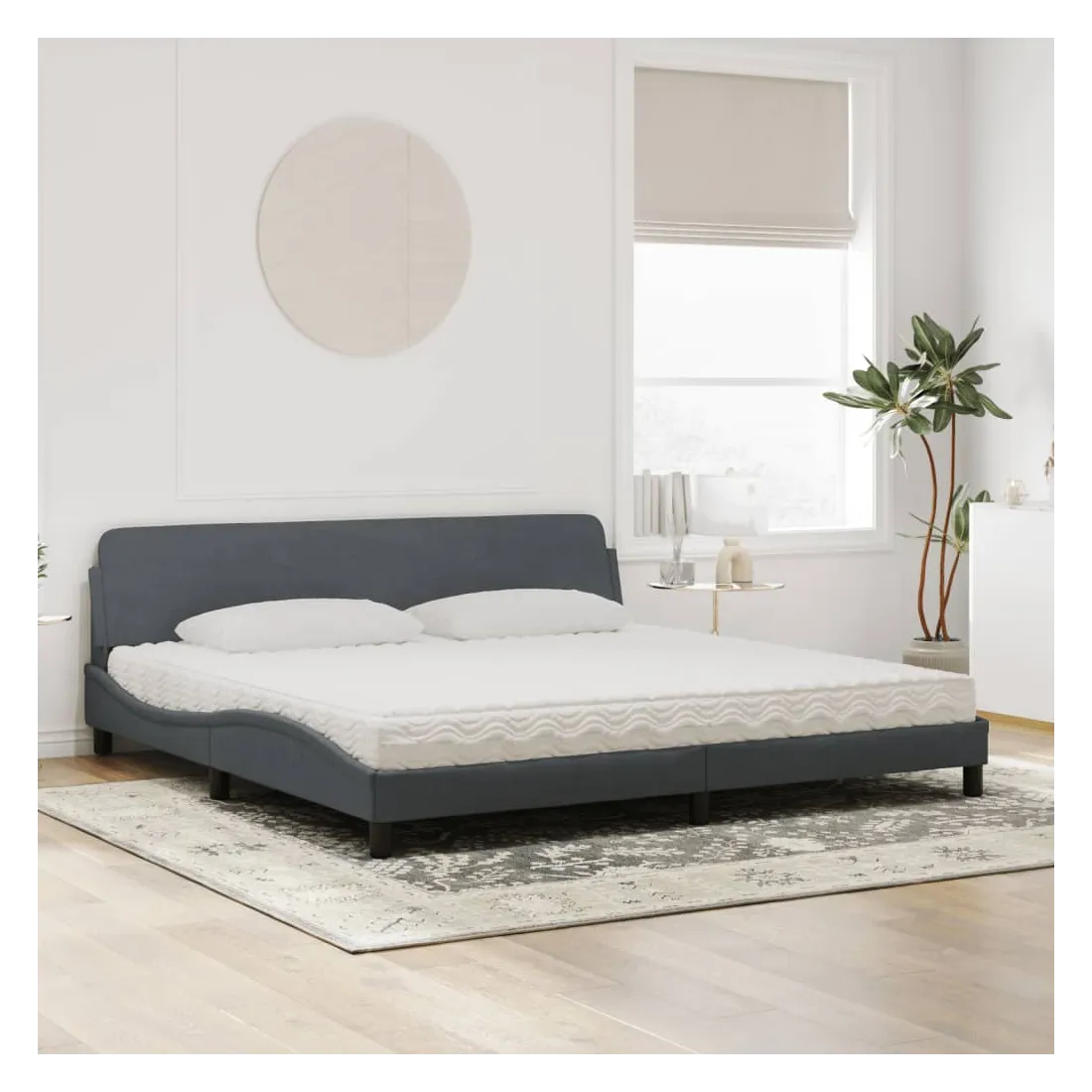 Obtenez une meilleure nuit de sommeil reposante grâce à ce lit avec matelas ! Il est un supplément accueillant à toute chambre à coucher. Velours doux : le velours est un tissu doux et confortable, agréable au toucher.Lattes de contreplaqué : les lattes de contreplaqué assurent une bonne répartition du poids, garantissant que le matelas reste en place à chaque torsion de votre corps pendant le sommeil.Excellent soutien : la tête de lit vous offre un excellent soutien du dos lorsque vous êtes assis dans votre lit pour lire ou regarder la télévision.Matelas en mousse : ce matelas de lit en tissu à 3 couches est rempli de mousse PU 22D pour un confort optimal. Il contribue à soulager la fatigue et à favoriser la circulation sanguine, vous offrant ainsi une relaxation complète et une bonne qualité de sommeil. En outre, le matelas est disponible en dureté H2 et H3, de sorte que vous pouvez simplement tourner le matelas pour choisir la dureté qui vous convient le mieux.Design latéral ondulé : l’aspect ondulé du cadre de lit est élégant et sophistiqué, ajoutant une touche moderne et élégante à votre décor, ce qui en fait le point central de votre chambre à coucher.