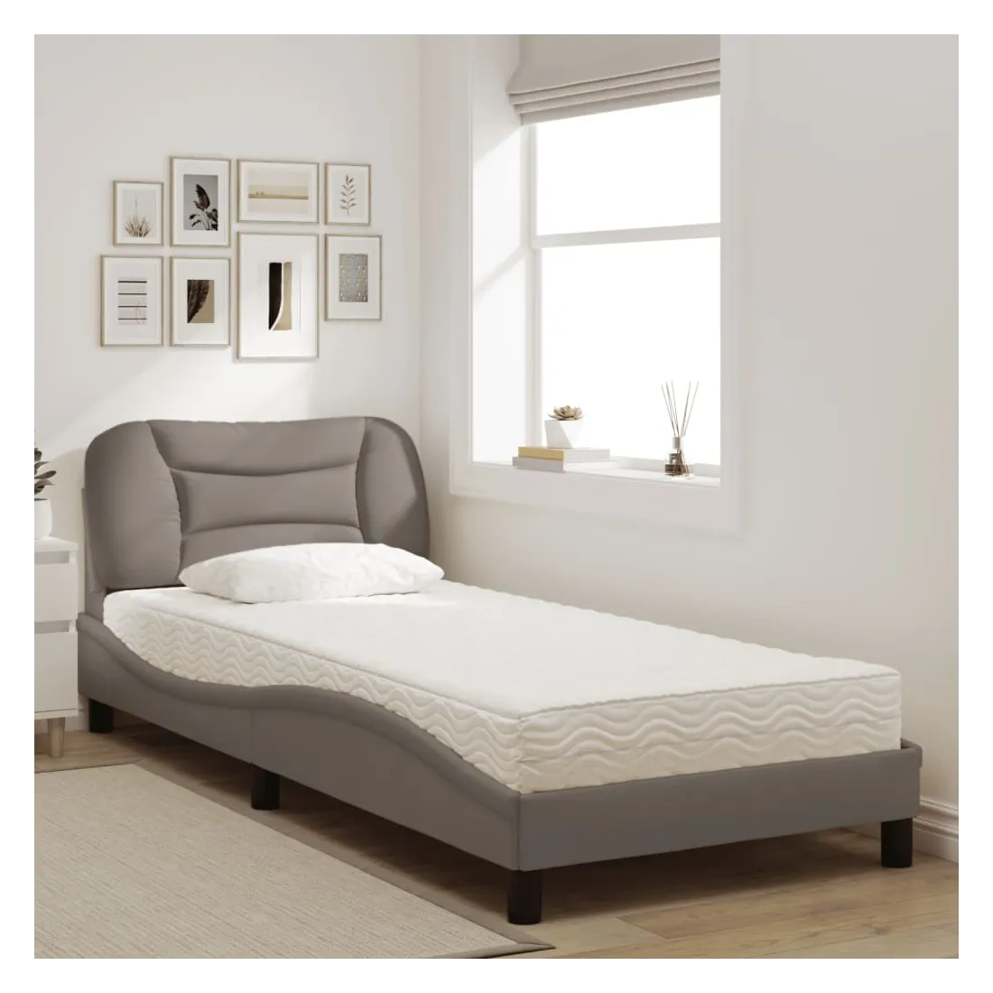 Obtenez une meilleure nuit de sommeil reposante grâce à ce lit avec matelas ! Il est un supplément accueillant à toute chambre à coucher. Tissu durable : le tissu présente un aspect simple et épuré, et il est respirant et durable.Lattes de contreplaqué : les lattes de contreplaqué assurent une bonne répartition du poids, garantissant que le matelas reste en place à chaque torsion de votre corps pendant le sommeil.Excellent soutien : la tête de lit vous offre un excellent soutien du dos lorsque vous êtes assis dans votre lit pour lire ou regarder la télévision.Matelas en mousse : ce matelas de lit en tissu à 3 couches est rempli de mousse PU 22D pour un confort optimal. Il contribue à soulager la fatigue et à favoriser la circulation sanguine, vous offrant ainsi une relaxation complète et une bonne qualité de sommeil. En outre, le matelas est disponible en dureté H2 et H3, de sorte que vous pouvez simplement tourner le matelas pour choisir la dureté qui vous convient le mieux.Design latéral ondulé : l’aspect ondulé du cadre de lit est élégant et sophistiqué, ajoutant une touche moderne et élégante à votre décor, ce qui en fait le point central de votre chambre à coucher.