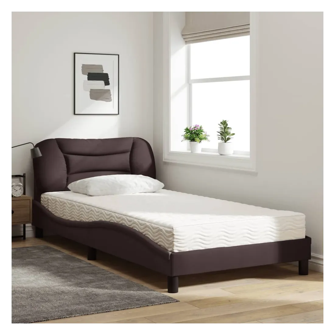 Obtenez une meilleure nuit de sommeil reposante grâce à ce lit avec matelas ! Il est un supplément accueillant à toute chambre à coucher. Tissu durable : le tissu présente un aspect simple et épuré, et il est respirant et durable.Lattes de contreplaqué : les lattes de contreplaqué assurent une bonne répartition du poids, garantissant que le matelas reste en place à chaque torsion de votre corps pendant le sommeil.Excellent soutien : la tête de lit vous offre un excellent soutien du dos lorsque vous êtes assis dans votre lit pour lire ou regarder la télévision.Matelas en mousse : ce matelas de lit en tissu à 3 couches est rempli de mousse PU 22D pour un confort optimal. Il contribue à soulager la fatigue et à favoriser la circulation sanguine, vous offrant ainsi une relaxation complète et une bonne qualité de sommeil. En outre, le matelas est disponible en dureté H2 et H3, de sorte que vous pouvez simplement tourner le matelas pour choisir la dureté qui vous convient le mieux.Design latéral ondulé : l’aspect ondulé du cadre de lit est élégant et sophistiqué, ajoutant une touche moderne et élégante à votre décor, ce qui en fait le point central de votre chambre à coucher.