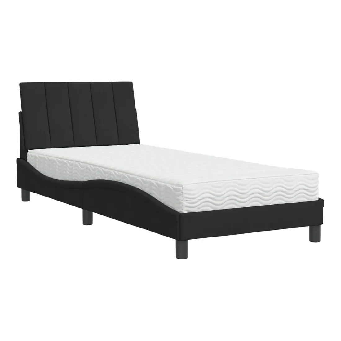 Obtenez une meilleure nuit de sommeil reposante grâce à ce lit avec matelas ! Il est un supplément accueillant à toute chambre à coucher. Velours doux : le velours est un tissu doux et confortable, agréable au toucher.Lattes de contreplaqué : les lattes de contreplaqué assurent une bonne répartition du poids, garantissant que le matelas reste en place à chaque torsion de votre corps pendant le sommeil.Excellent soutien : la tête de lit vous offre un excellent soutien du dos lorsque vous êtes assis dans votre lit pour lire ou regarder la télévision.Matelas en mousse : ce matelas de lit en tissu à 3 couches est rempli de mousse PU 22D pour un confort optimal. Il contribue à soulager la fatigue et à favoriser la circulation sanguine, vous offrant ainsi une relaxation complète et une bonne qualité de sommeil. En outre, le matelas est disponible en dureté H2 et H3, de sorte que vous pouvez simplement tourner le matelas pour choisir la dureté qui vous convient le mieux.Design latéral ondulé : l’aspect ondulé du cadre de lit est élégant et sophistiqué, ajoutant une touche moderne et élégante à votre décor, ce qui en fait le point central de votre chambre à coucher.